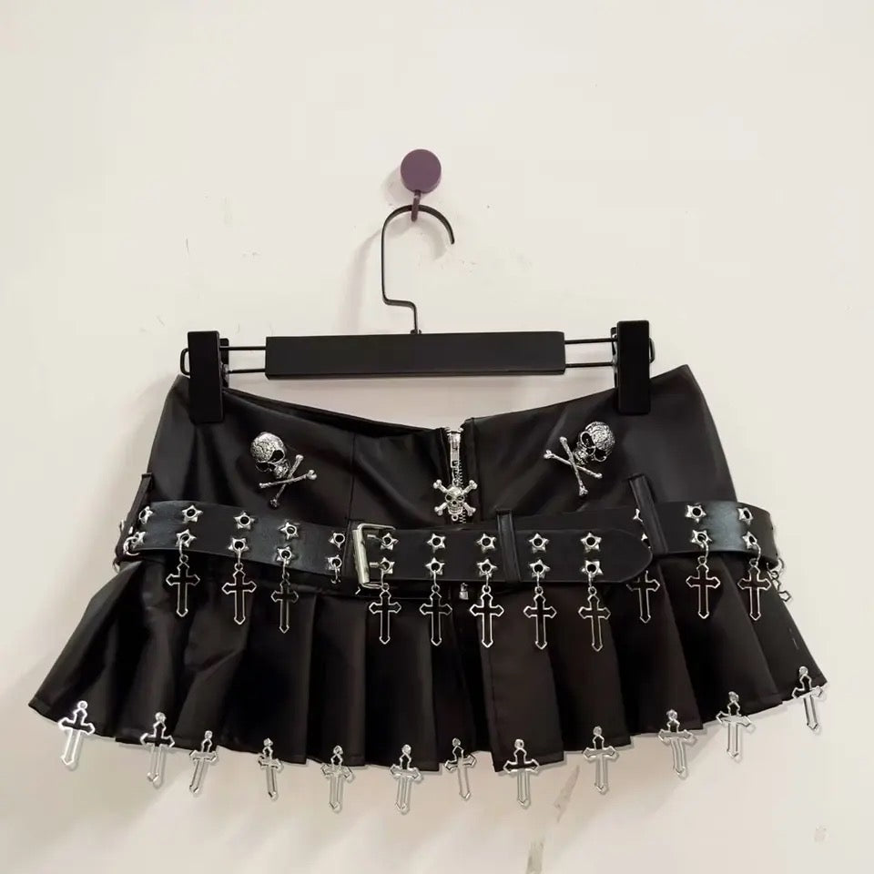 Black Punk Low Rise Mini Skirt With Charm Belt