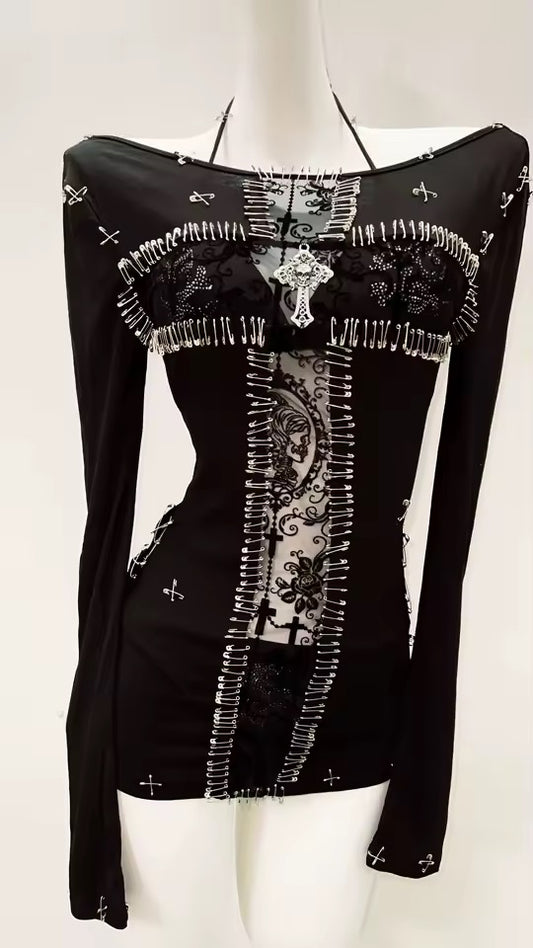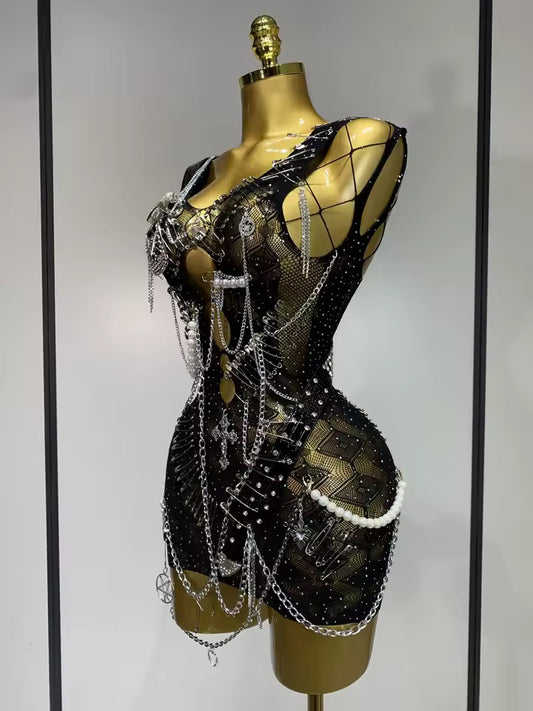 Black Mesh Ultimate Punk Charm Mini Chain Dress