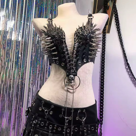 Black Faux leather Spike Skull Punk Body Harness