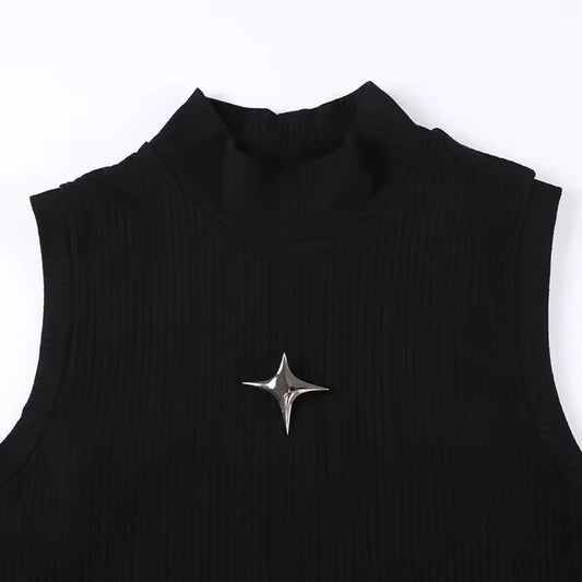 Black Cyber Punk Y2k Minimalist Crop Top