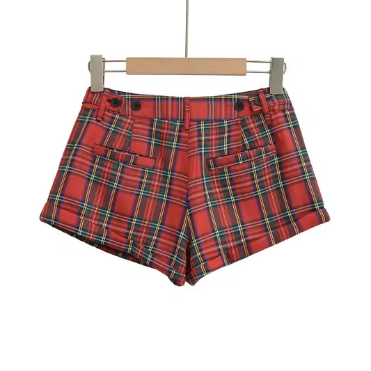 Red Tartan Checkered Punk Retro Hot Pant Shorts