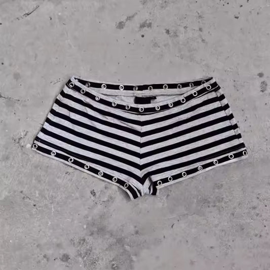 Black And White Striped Emo Y2k Low Rise Hot Pants