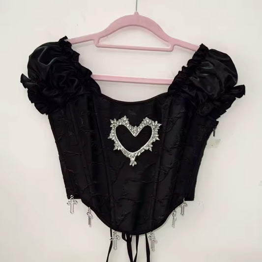Black Gothic Lolita Corset Heart Cross Crop Top
