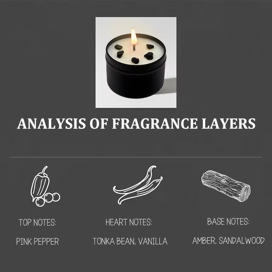 Immerse yourself in the enchanting aroma of Amber Vanilla Black Crystal Fortress Scented Candle. Let the dark, soothing fragrance relax your mind as you conjure spirits and manifest light. Feel the magic with every burn.