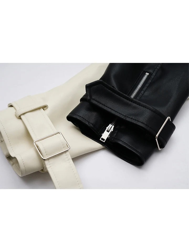 Black And Cream Cruella Faux Leather Aviator Jacket