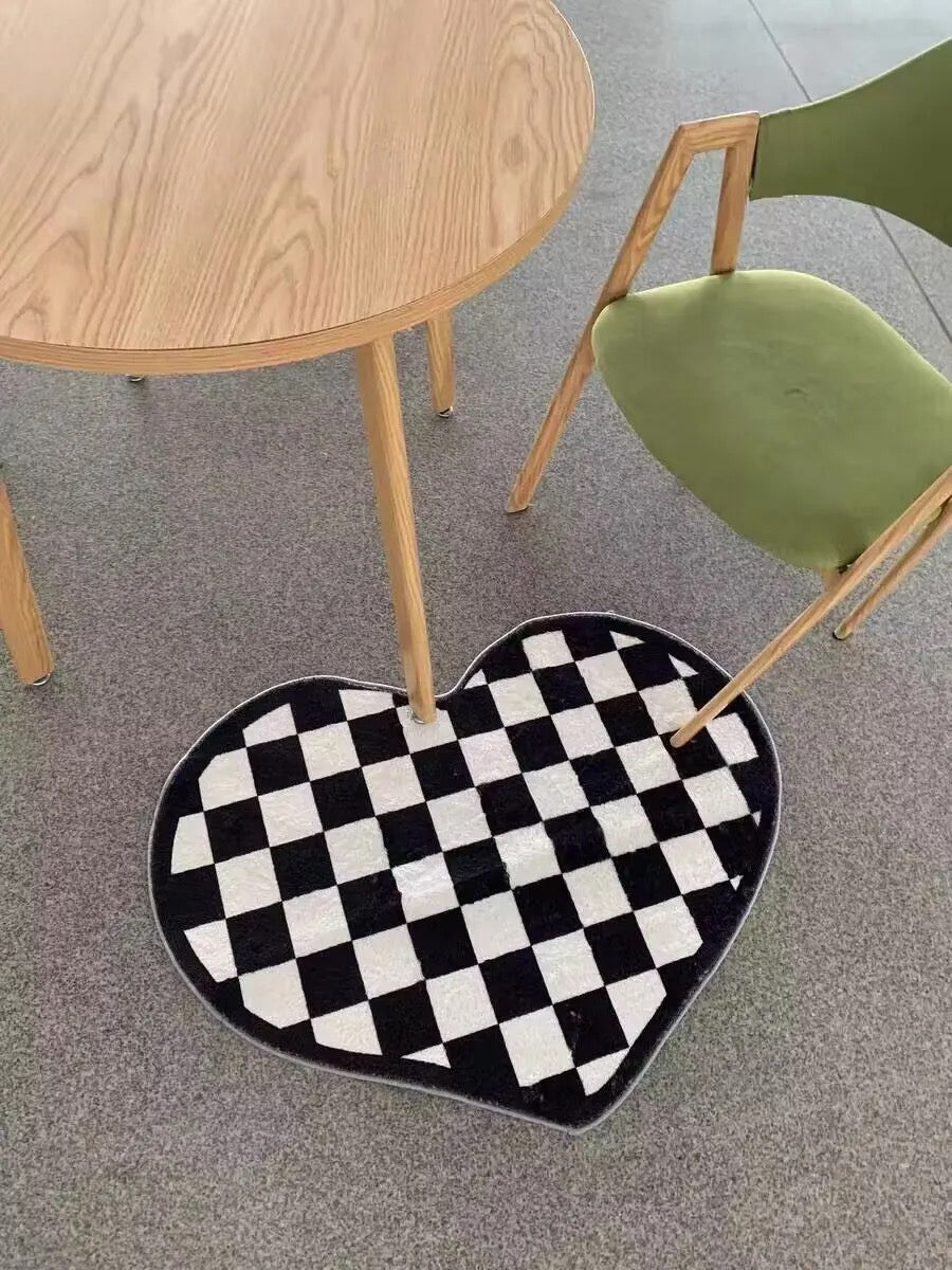 This Black and White Checkerboard Heart Shaped Mat is perfect for Alt people looking to bring a personal touch of style to any space. At 60x80cm in size, it's the perfect size to complete the look with any décor.