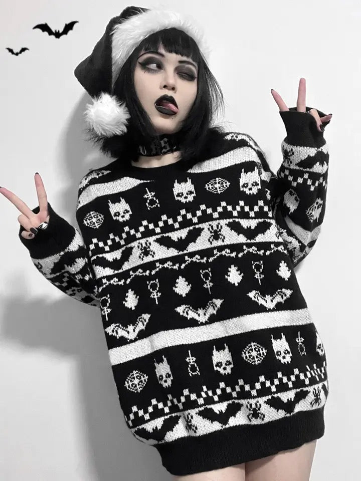 Black And White Gothic Christmas Oversized Sweater Jumper