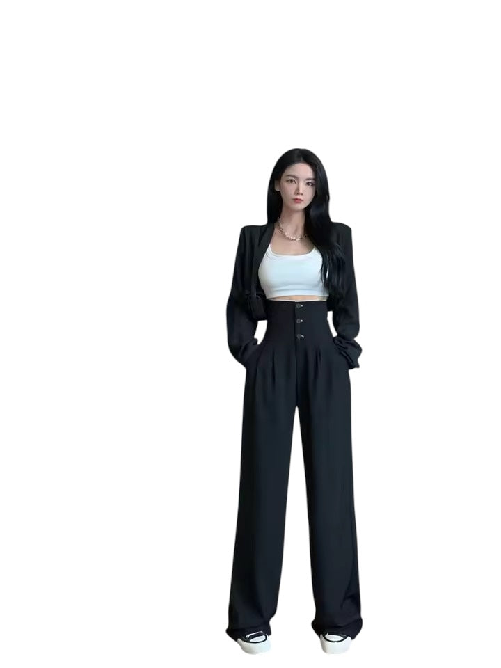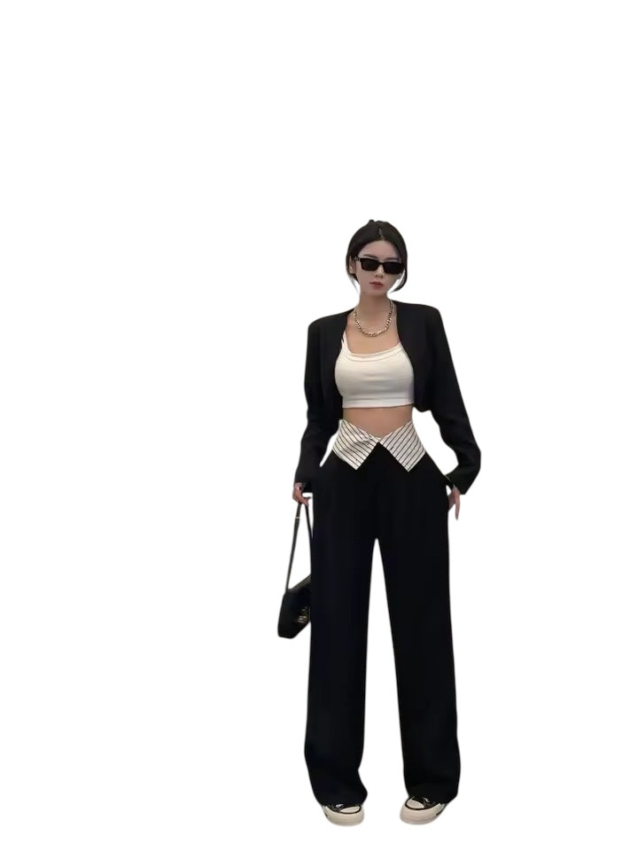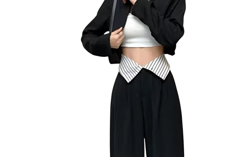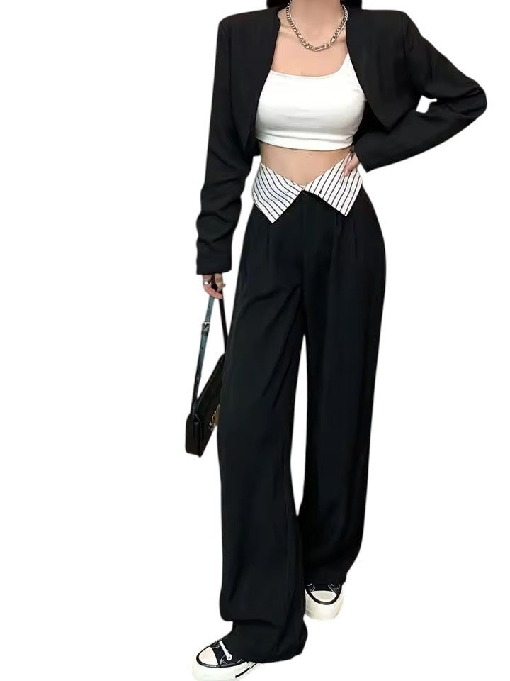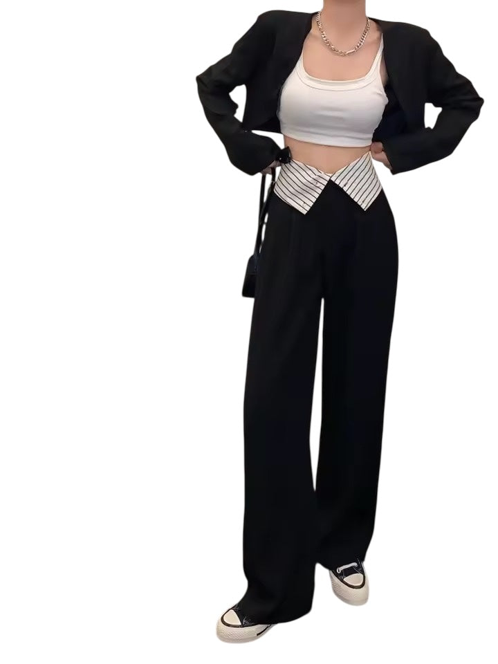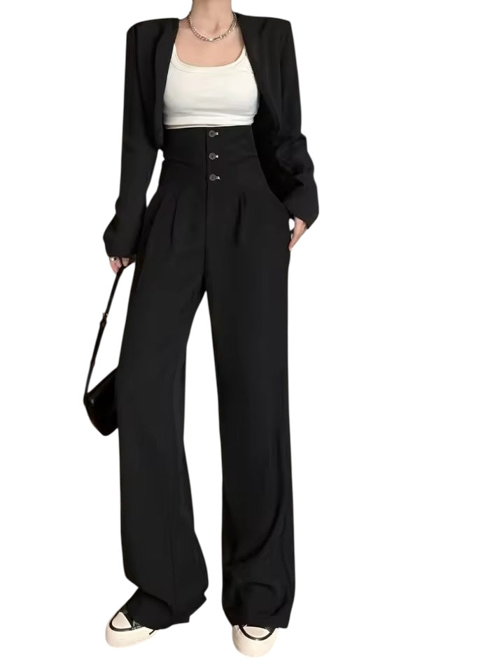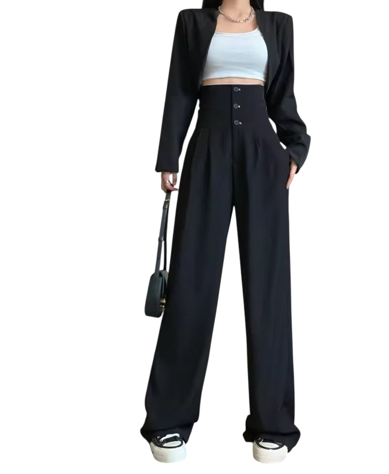 Black Corporate Goth 2 In 1 Wide Leg Suit Trousers