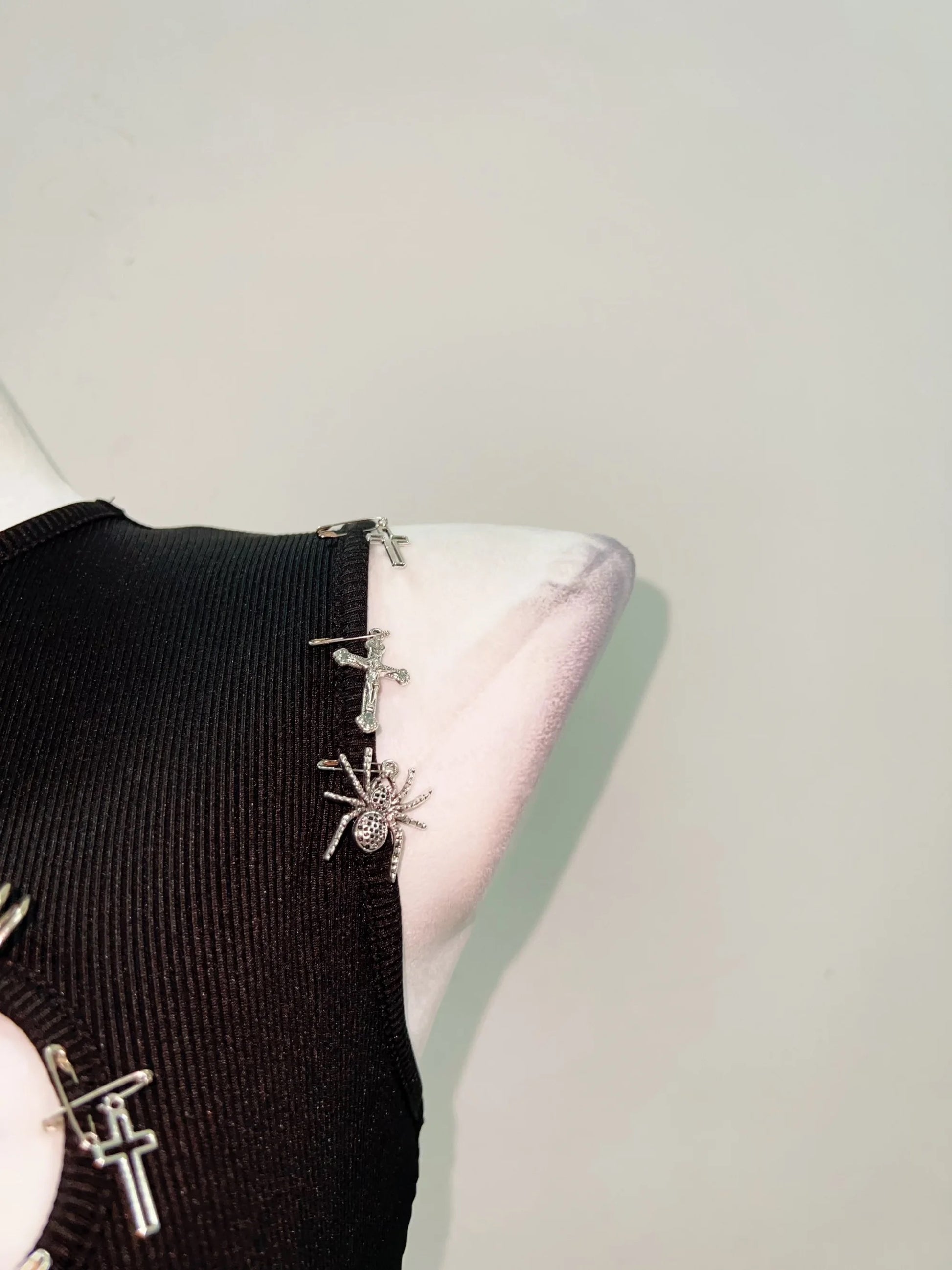 Black Cut Out One Shoulder Punk Chain Crop Top