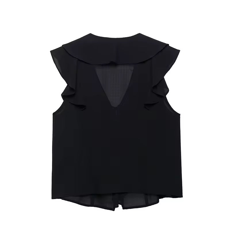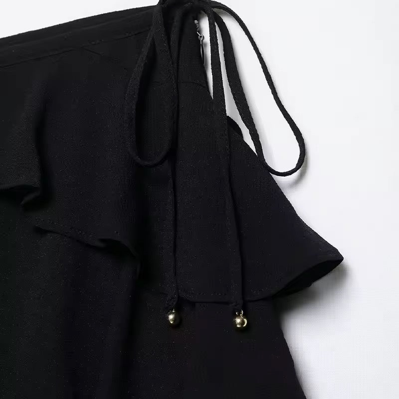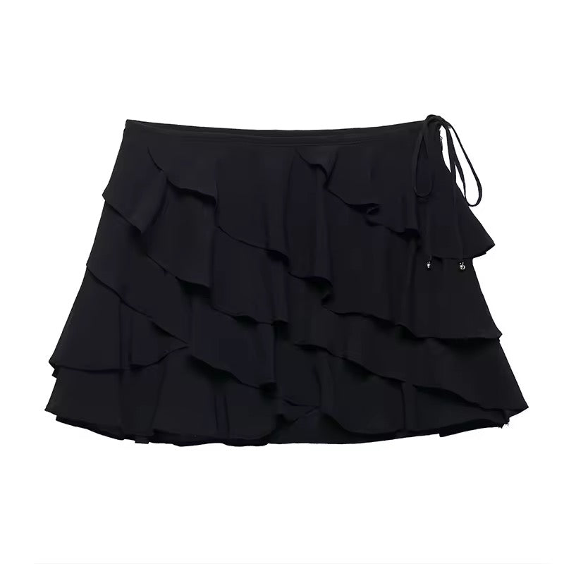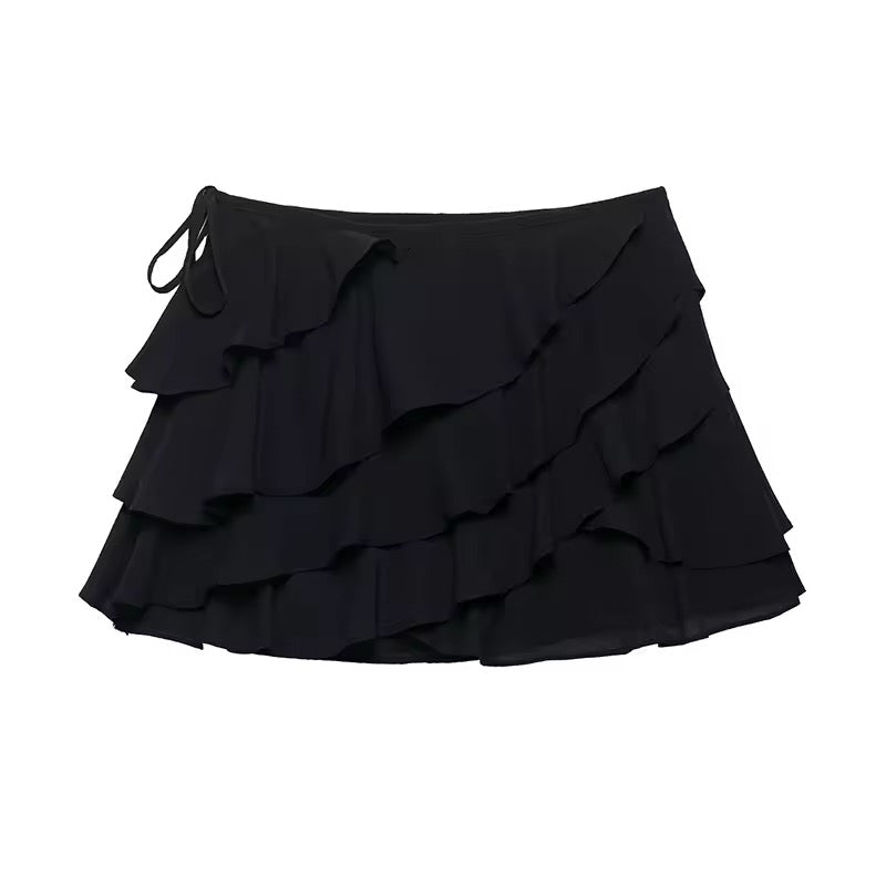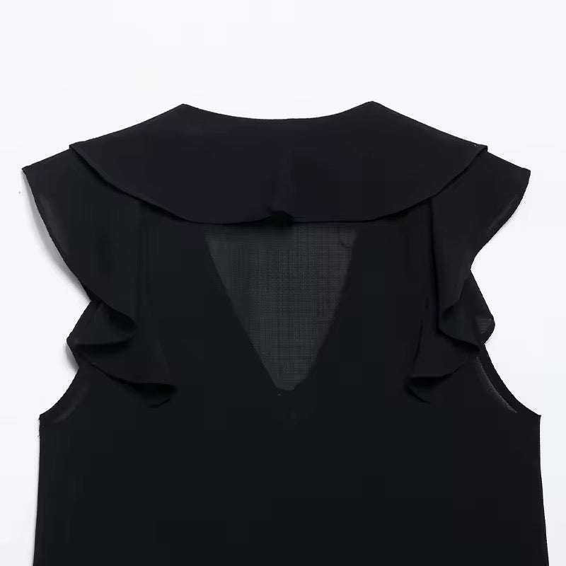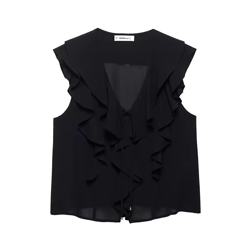 This 2 piece set features a sheer chiffon vest and a mini skirt, perfect for both work and a night out. The ruffle design adds a touch of flowy romance to the soft fabric. Make a bold statement in this Black Dark Romance set.