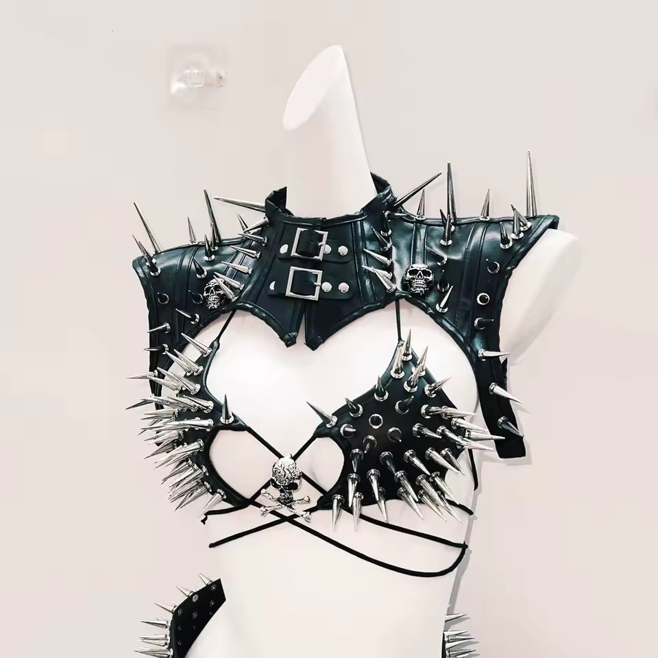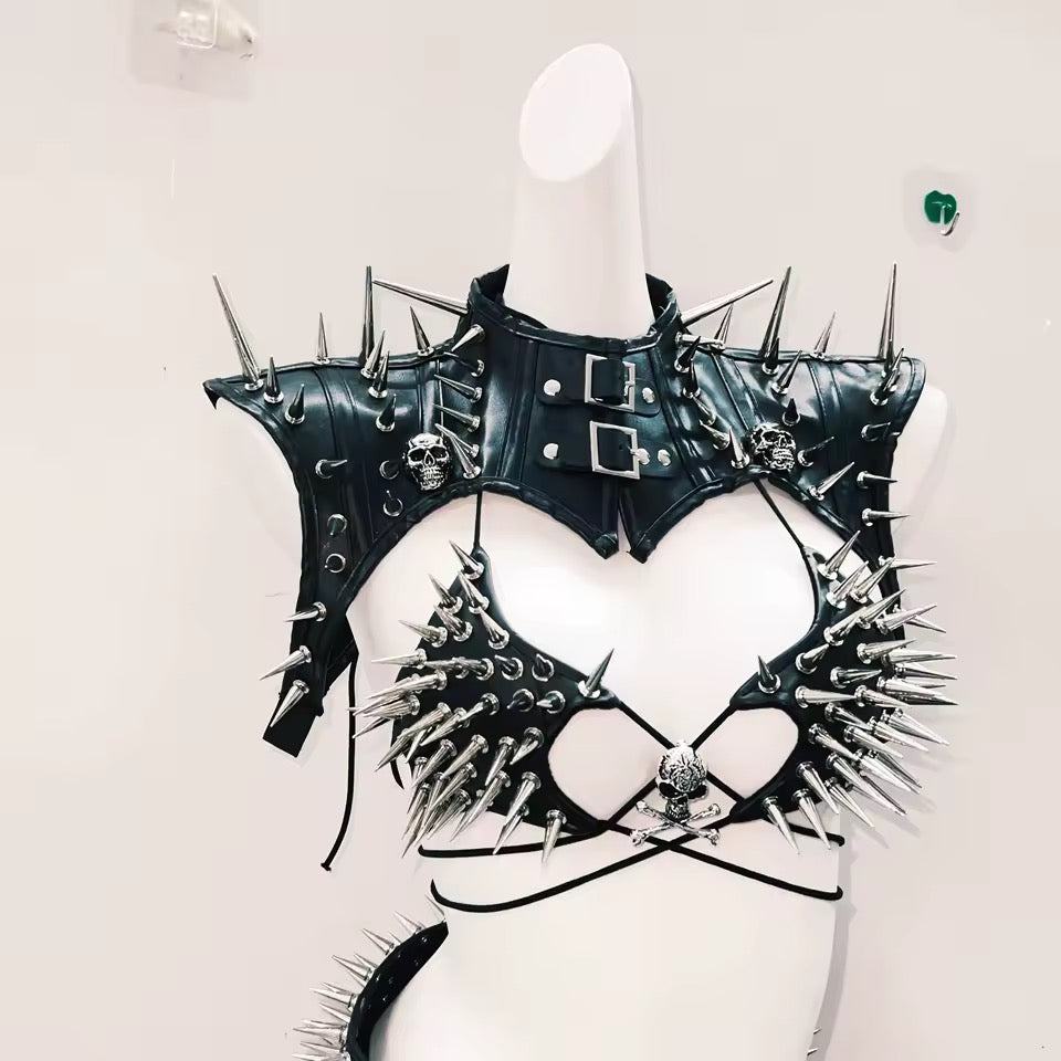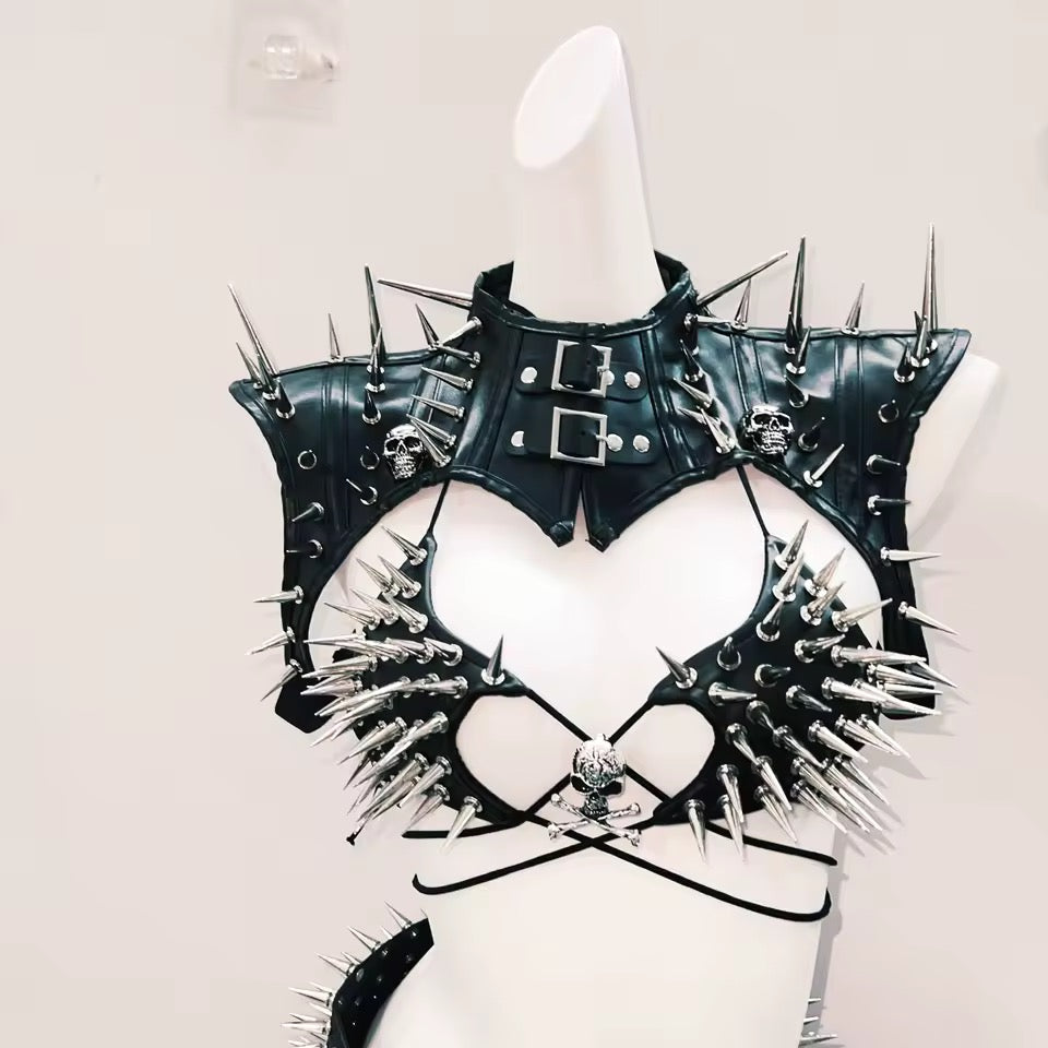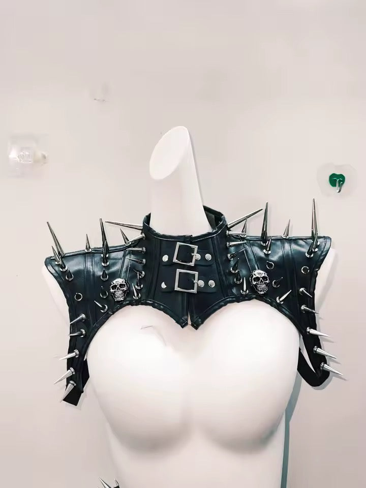 Black Faux Leather Choker Spike Bolero Shoulder Harness