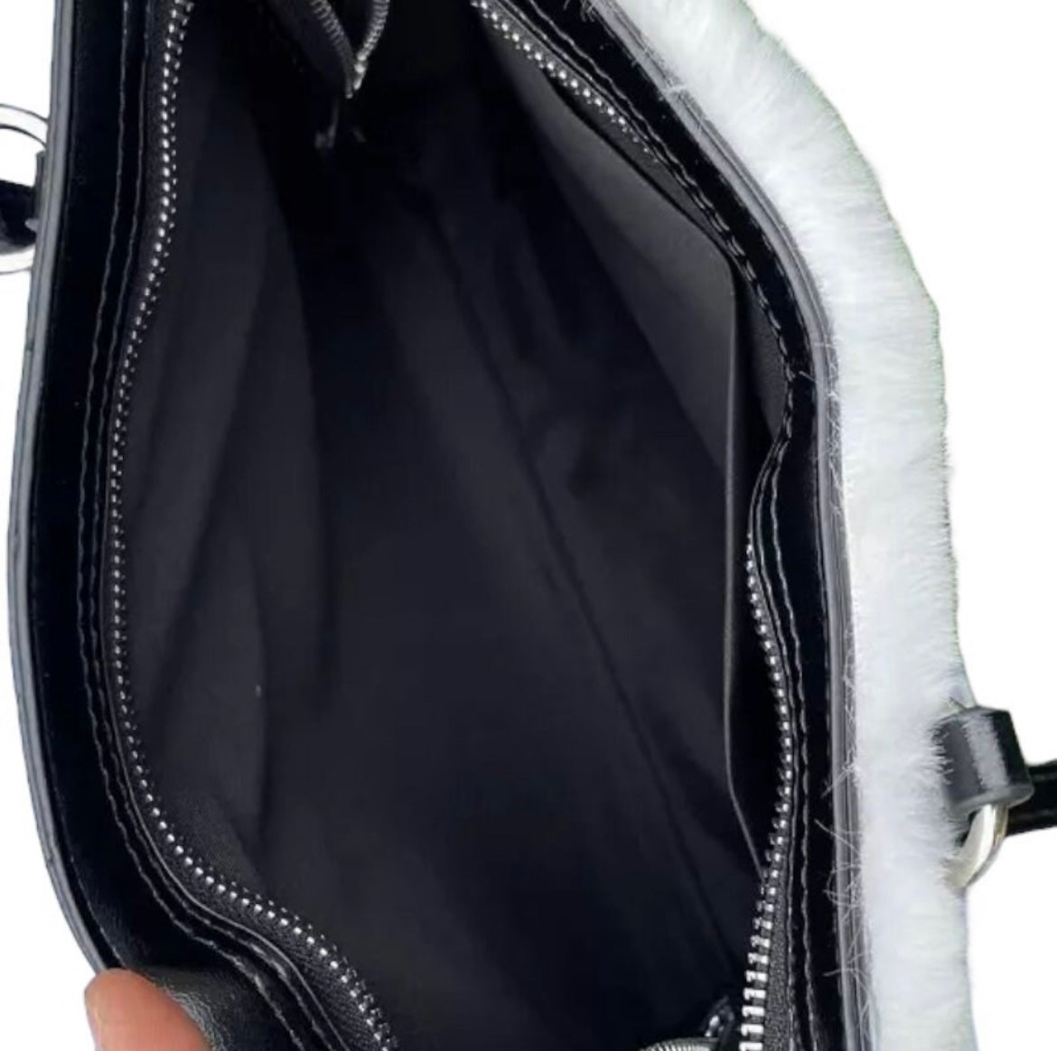 The Black Faux Leather Gothic Fluffy Tote Bag is a stylish and unique accessory for those who want to make a statement. This bag features a skull and cross bone patch, along with a luxurious white fluffy trim that brings a touch of vibrancy to any outfit.
