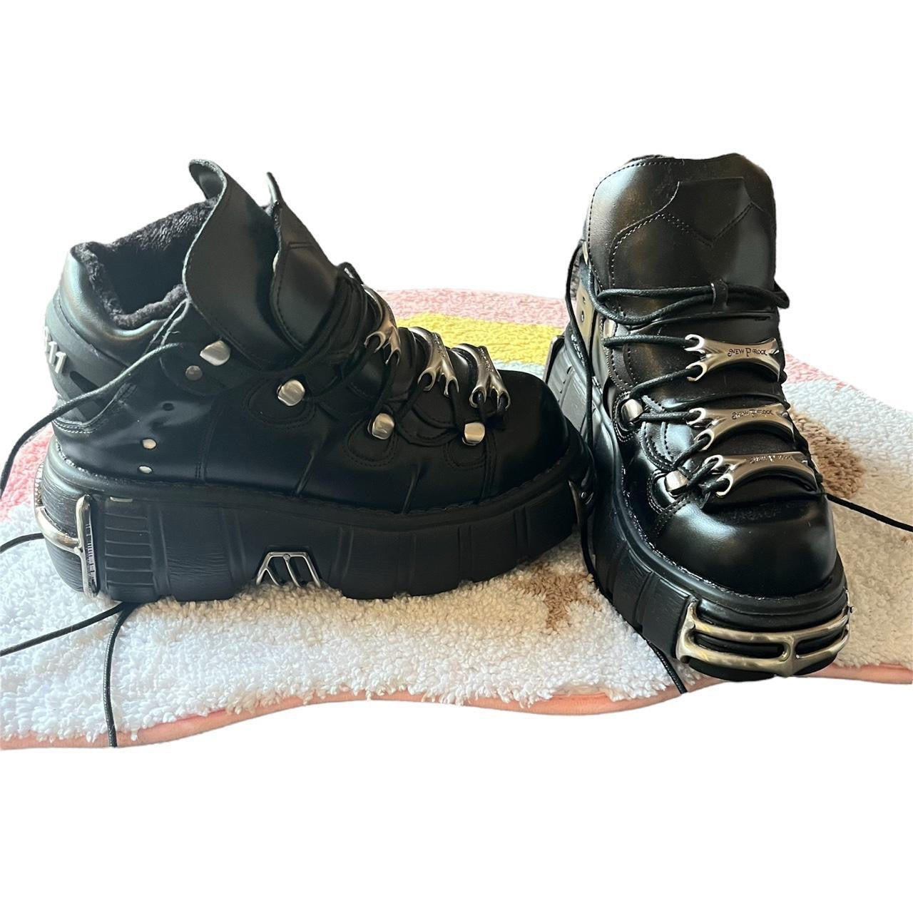 Step up your shoe game with these badass Black Faux Leather Punk Chunky Platform Boot Trainers! These trainers are gonna have heads turning and jaws dropping with their heavy-duty punk style and unique platform design. Be the envy of all your friends when you rock these bad boys! 🔥🔥