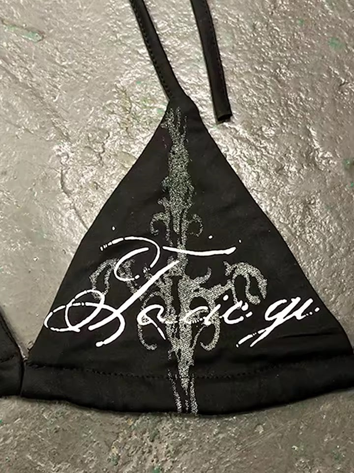 Black Gothic Cross I Don’t Want To Talk Bikini Set