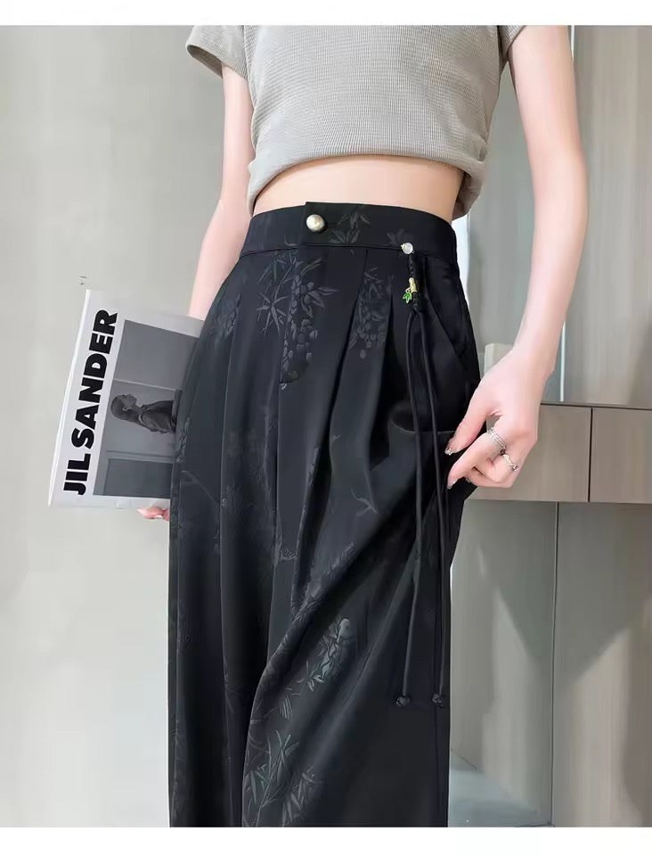 Black Gothic Floral Wide Leg Corporate Trousers