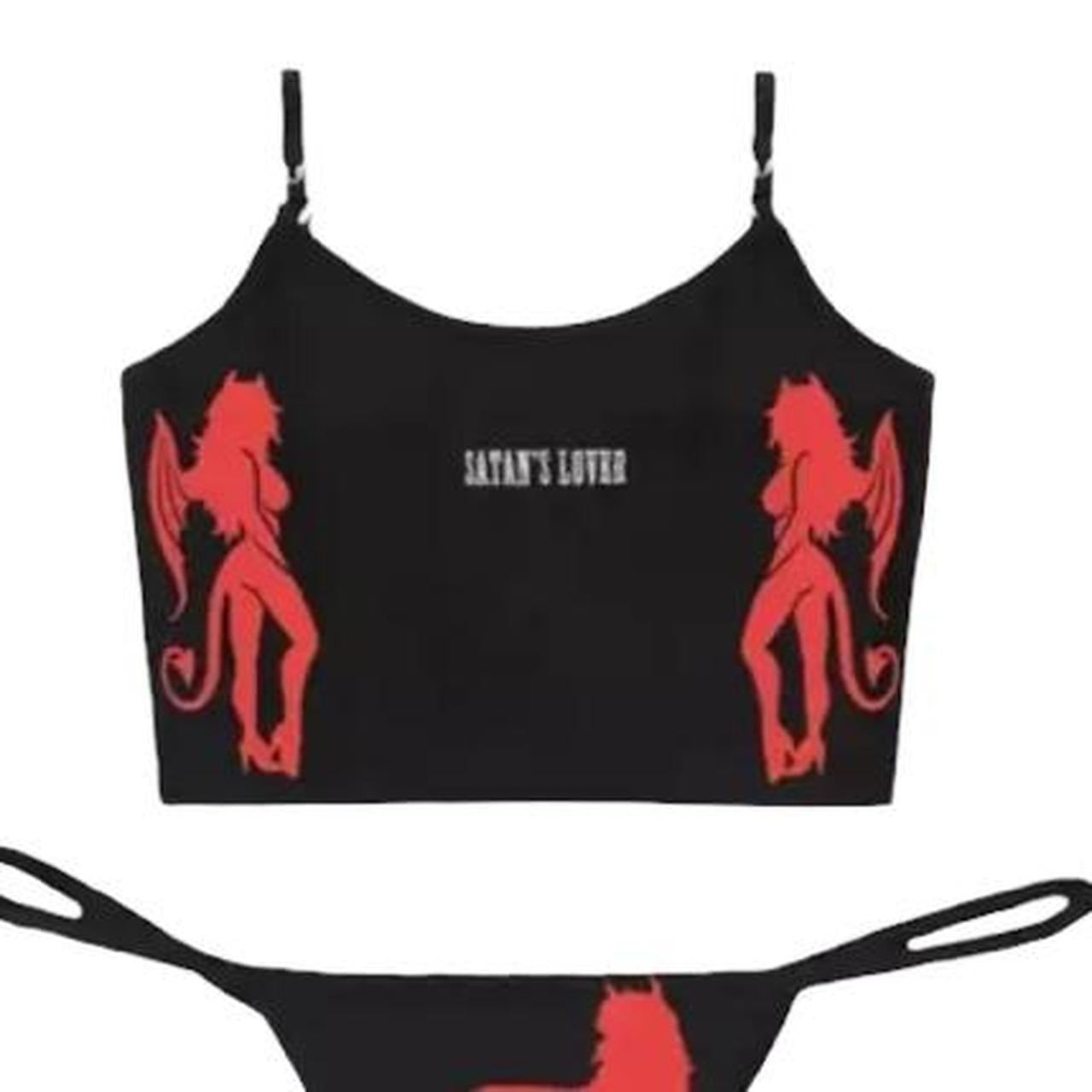 Experience an edgy and sultry swimsuit with the Black Gothic Satans Lover 2 Piece Bikini Set. Featuring a black bikini set with a Gothic Satans Lover slogan, it offers a unique look that will turn heads on the beach.