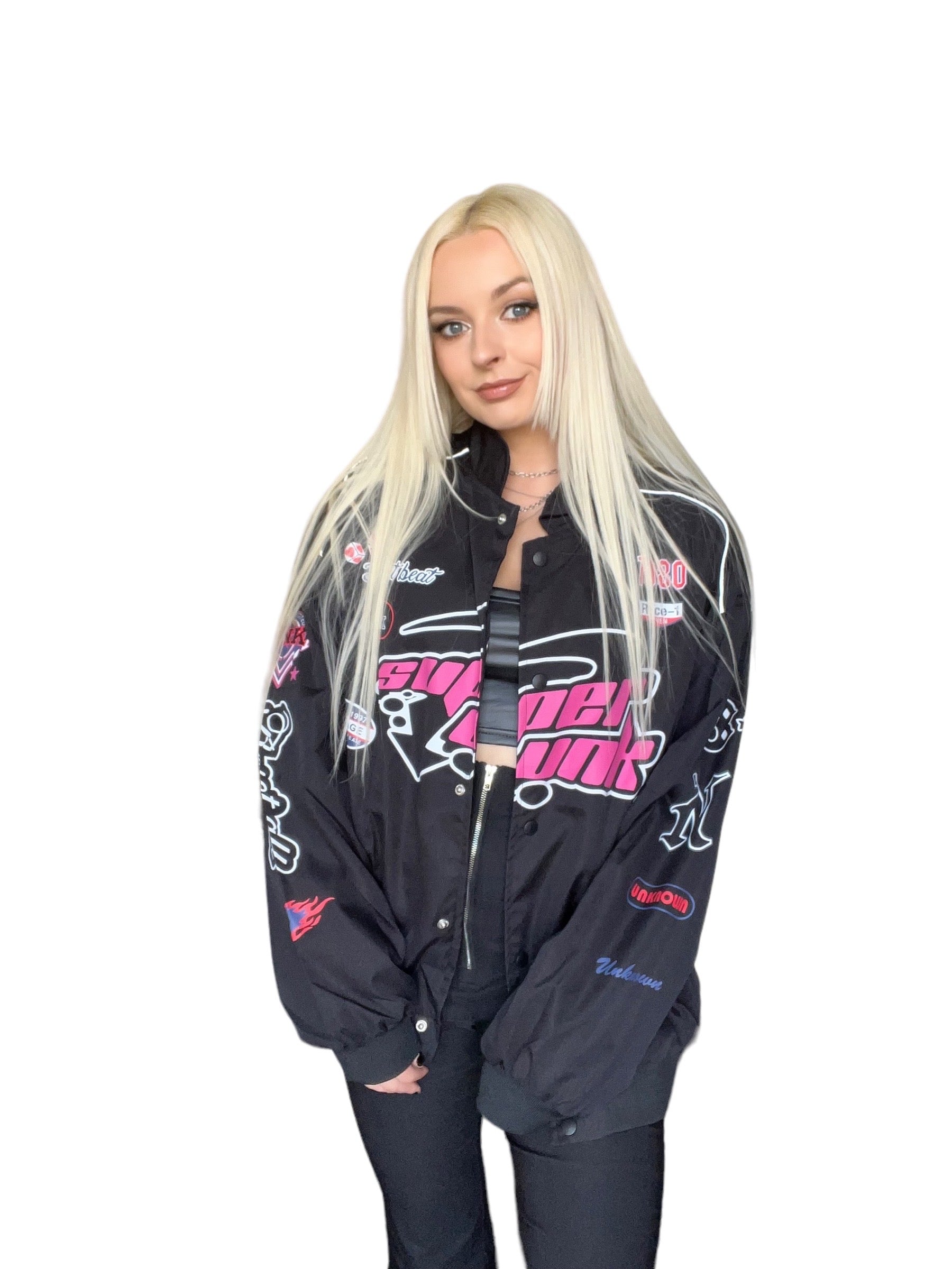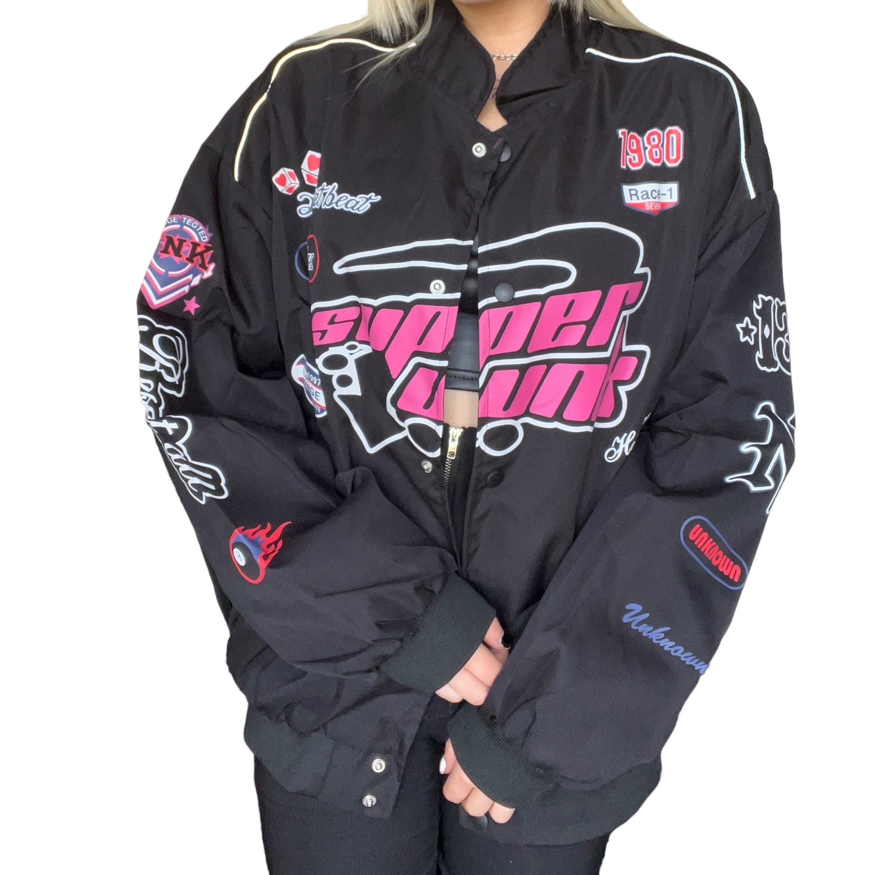 Black Kawaii Motocross Patch Bomber Jacket