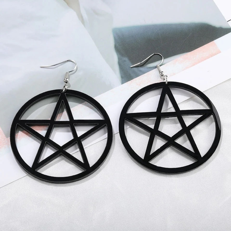 These Black Pentagram Large Hoop Gothic Earrings are an essential accessory for any gothic wardrobe. Their bold, eye-catching design gives any outfit a unique edge, while their lightweight construction ensures all-day comfort. Add a touch of the macabre to your look with these stylish earrings.