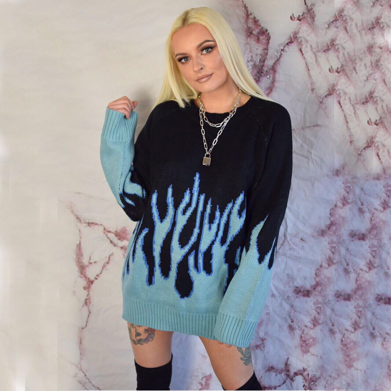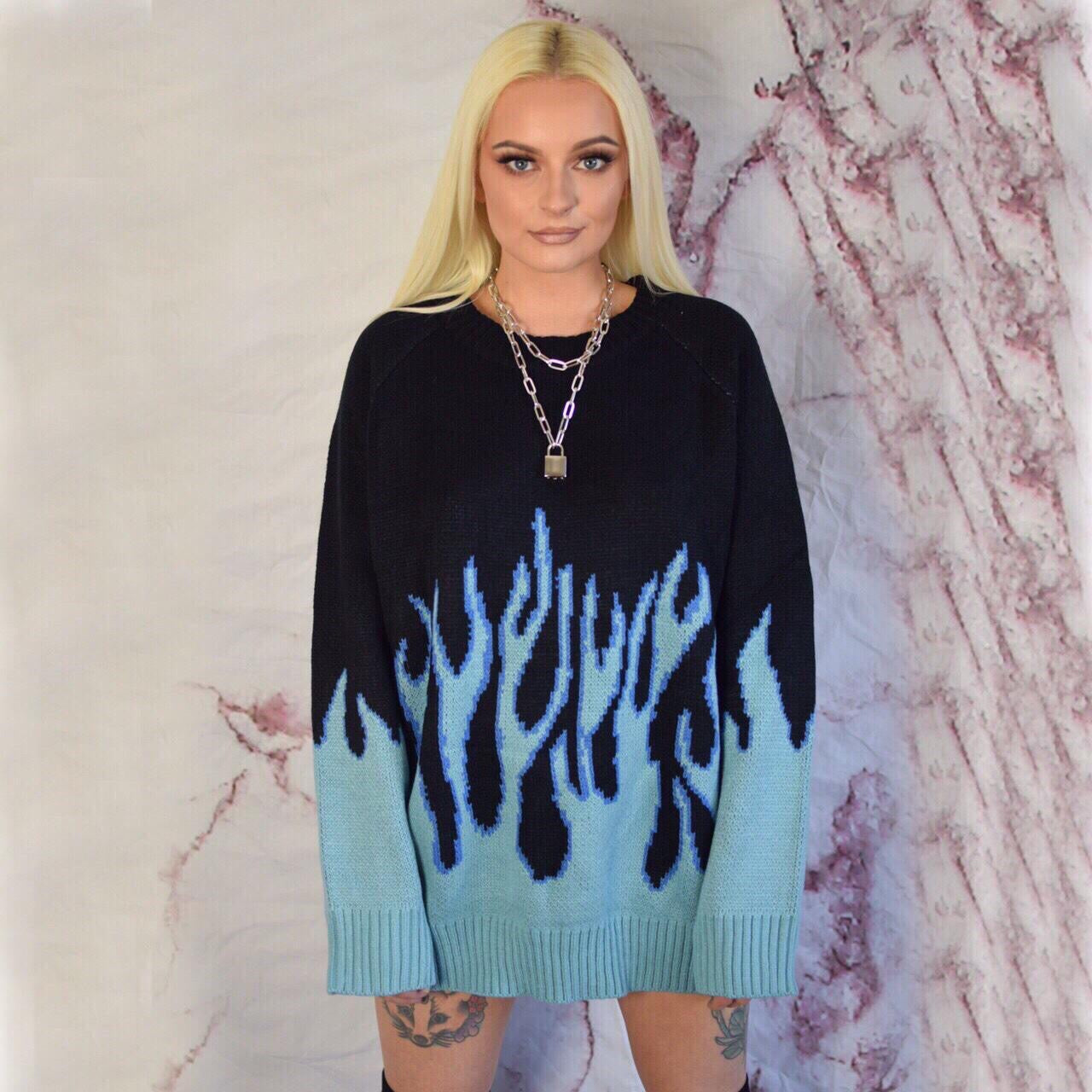 Cuddle up in this Black Punk Flame Oversized Jumper Dress and get ready to turn up the heat! This "flaming" kawaii jumper will have you styling and profiling without breaking a sweat. Wear it with a pair of boots for a sizzling look, guaranteed to keep the compliments comin'!