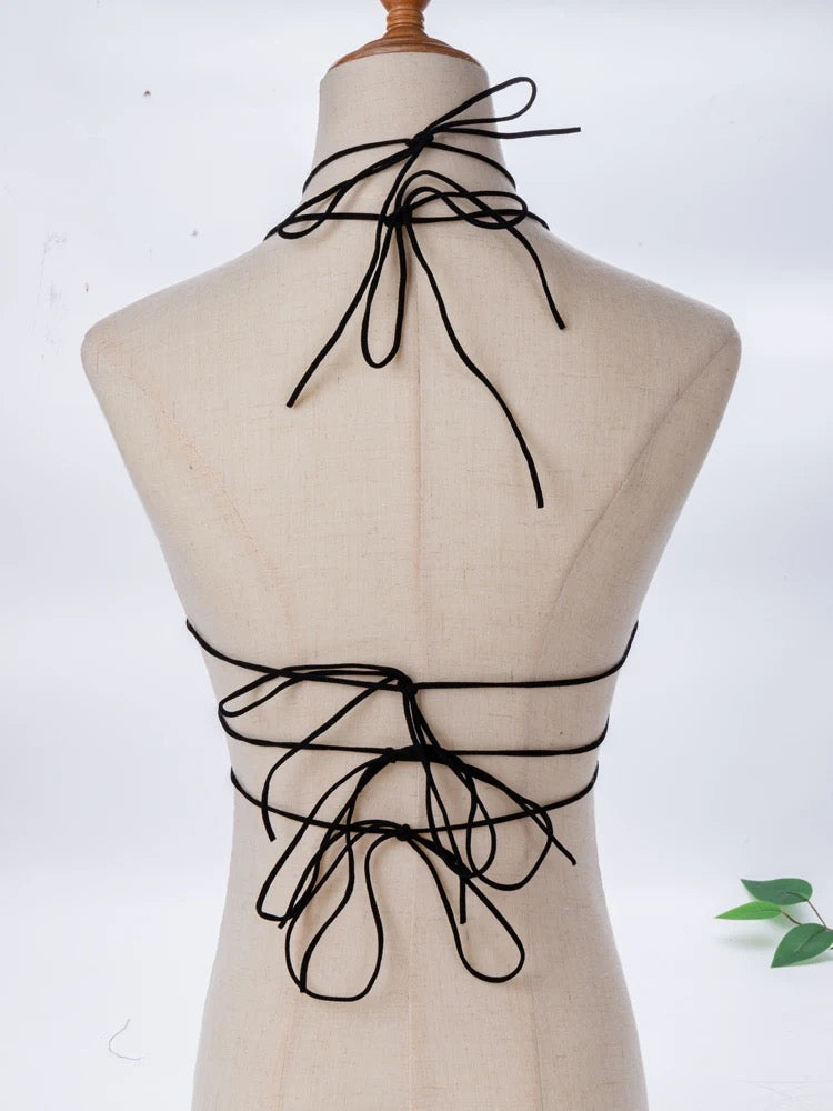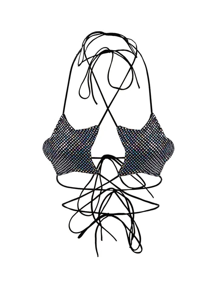 Black Rhinestone Star Shaped Halterneck Rave Bralet