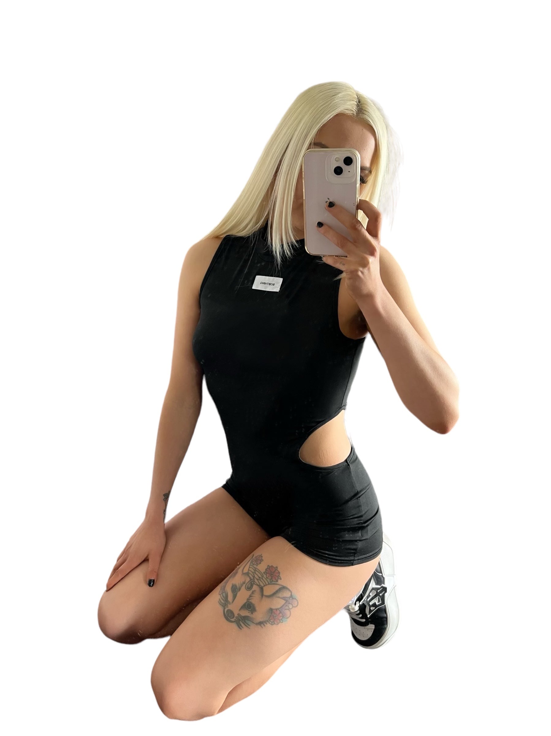 This Black Techno Cut Out Every Day Festival Playsuit is a go-to for comfort and versatility. Built with lightweight materials, it can be worn for casual looks or raving. Featuring intricate cut-out patterns, it'll make a fashionable addition to any wardrobe.