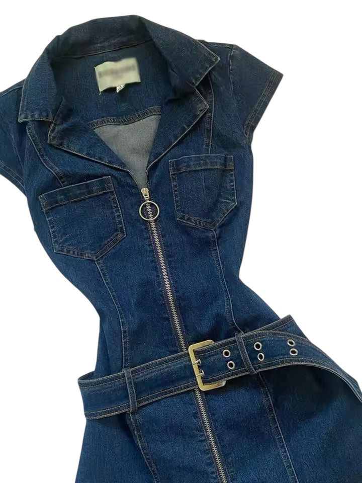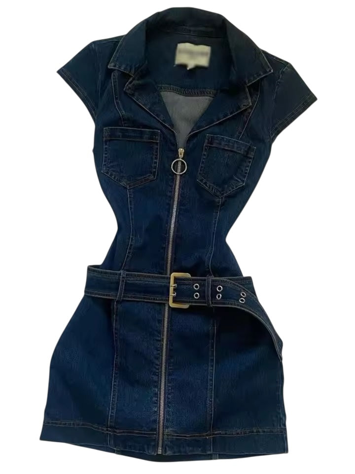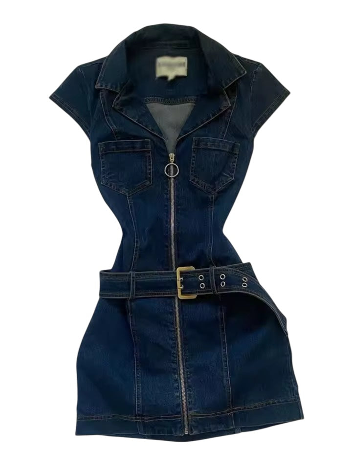 Expertly crafted from high-quality denim, our Blue Y2k Belt Mini Minimalist Dress is the perfect addition to any wardrobe. With an exposed zip fastening in the front, this mini length dress exudes sophistication and style. The Y2k design and included belt add the perfect touch of modern flair. Transition seamlessly into any season with this versatile piece.