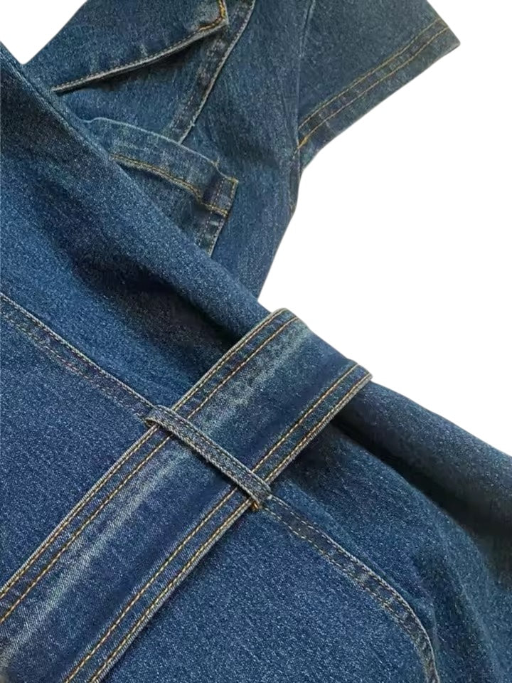 Blue Denim Y2k Belt Mini Minimalist Dress
