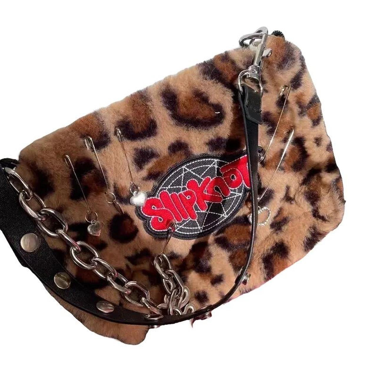 Make a statement with this edgy Brown Leopard Print Plush Punk Chain Shoulder Bag. With its punk-inspired fluffy slipknot and unique band bag, it's sure to give your outfit a rebellious makeover! Layer on the attitude and unleash your inner punk!
