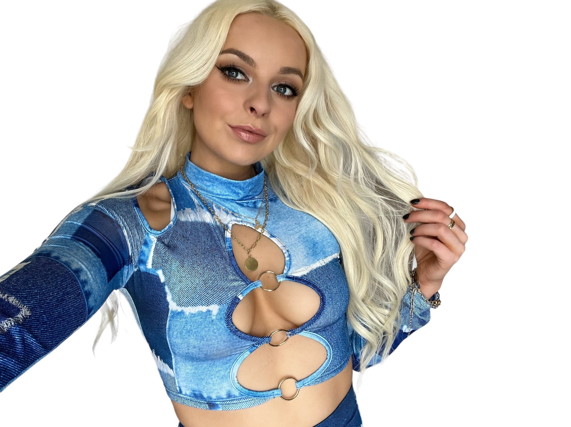 Look fly as hell in this super cute Denim Print 2 Piece Cut Out Co-Ord Skirt Set! The long sleeve crop top with O ring cut out front and matching mini skirt are the perfect combo for when you want to show off your style on those nights out (woot woot!). This set has you lookin' good and feeling even better - it's awesome!