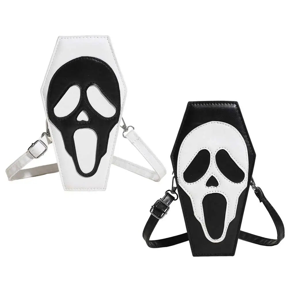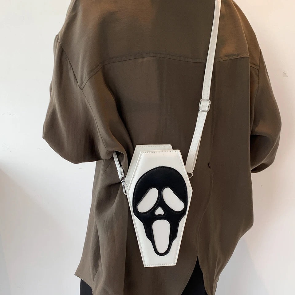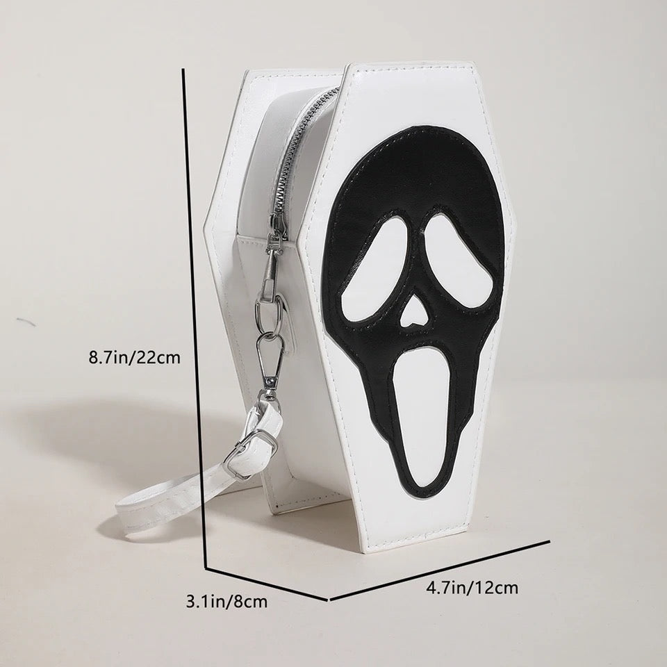 Faux Leather Ghost Face Coffin Shaped Cross Body Bag