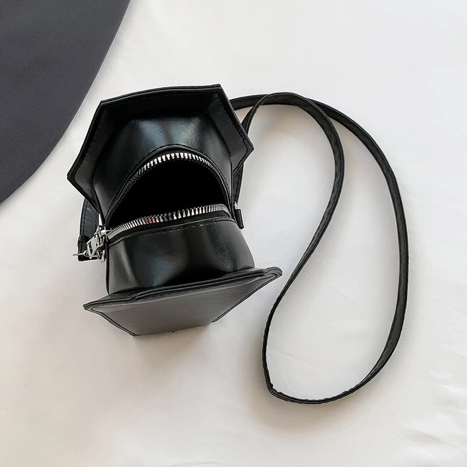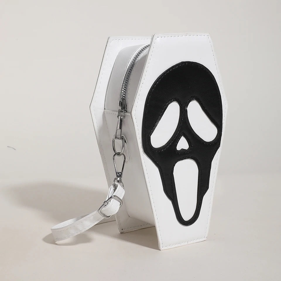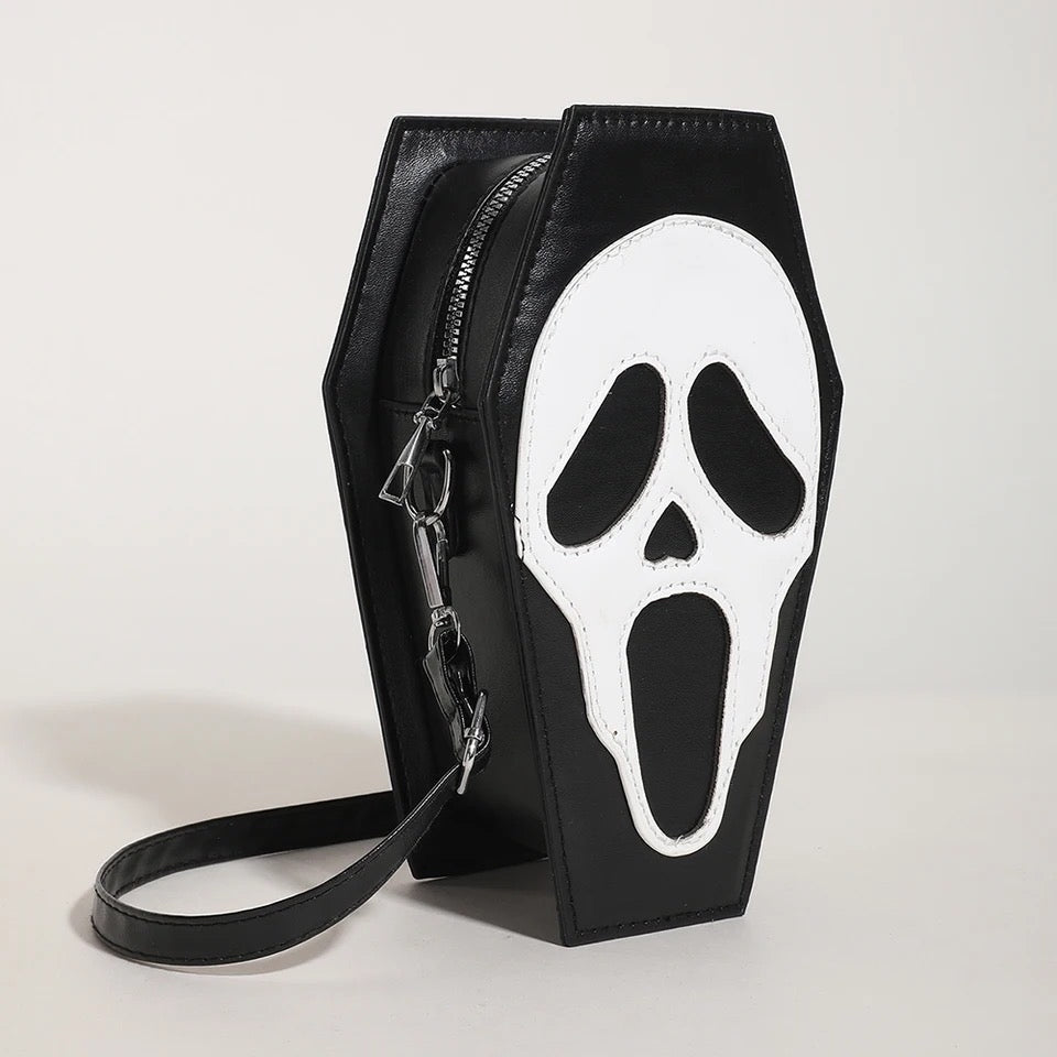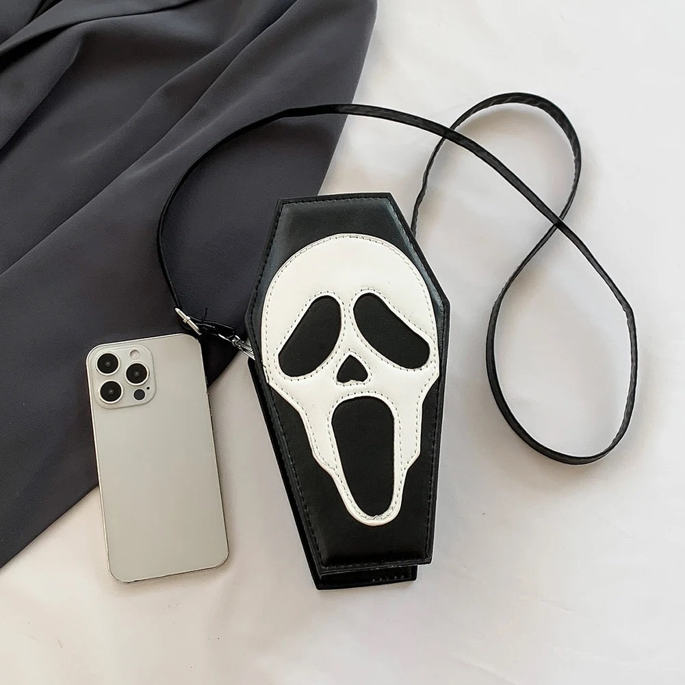 Faux Leather Ghost Face Coffin Shaped Cross Body Bag