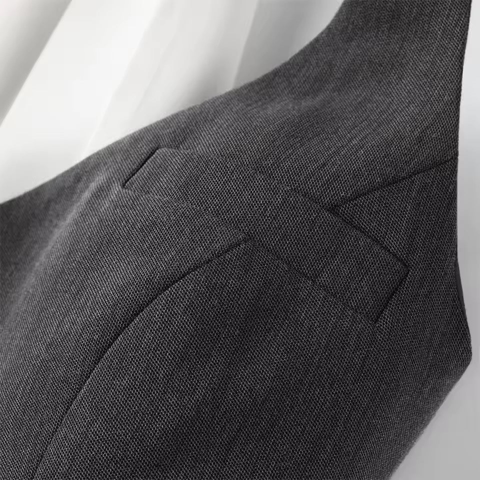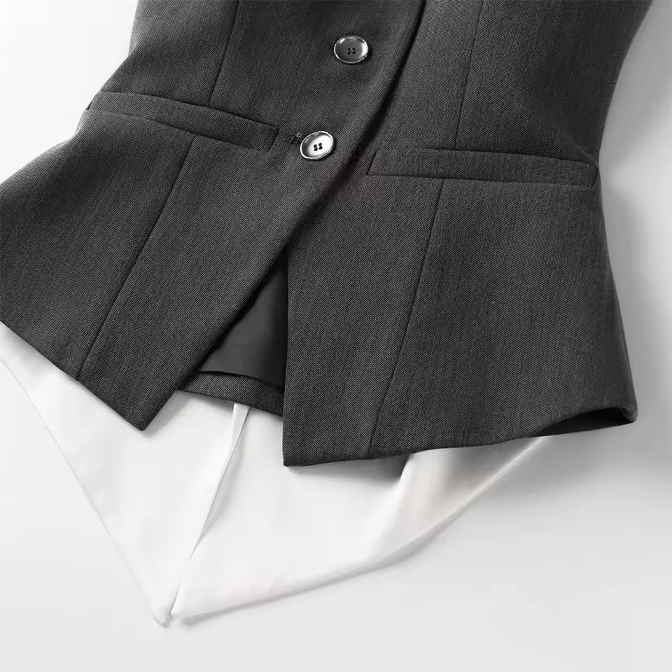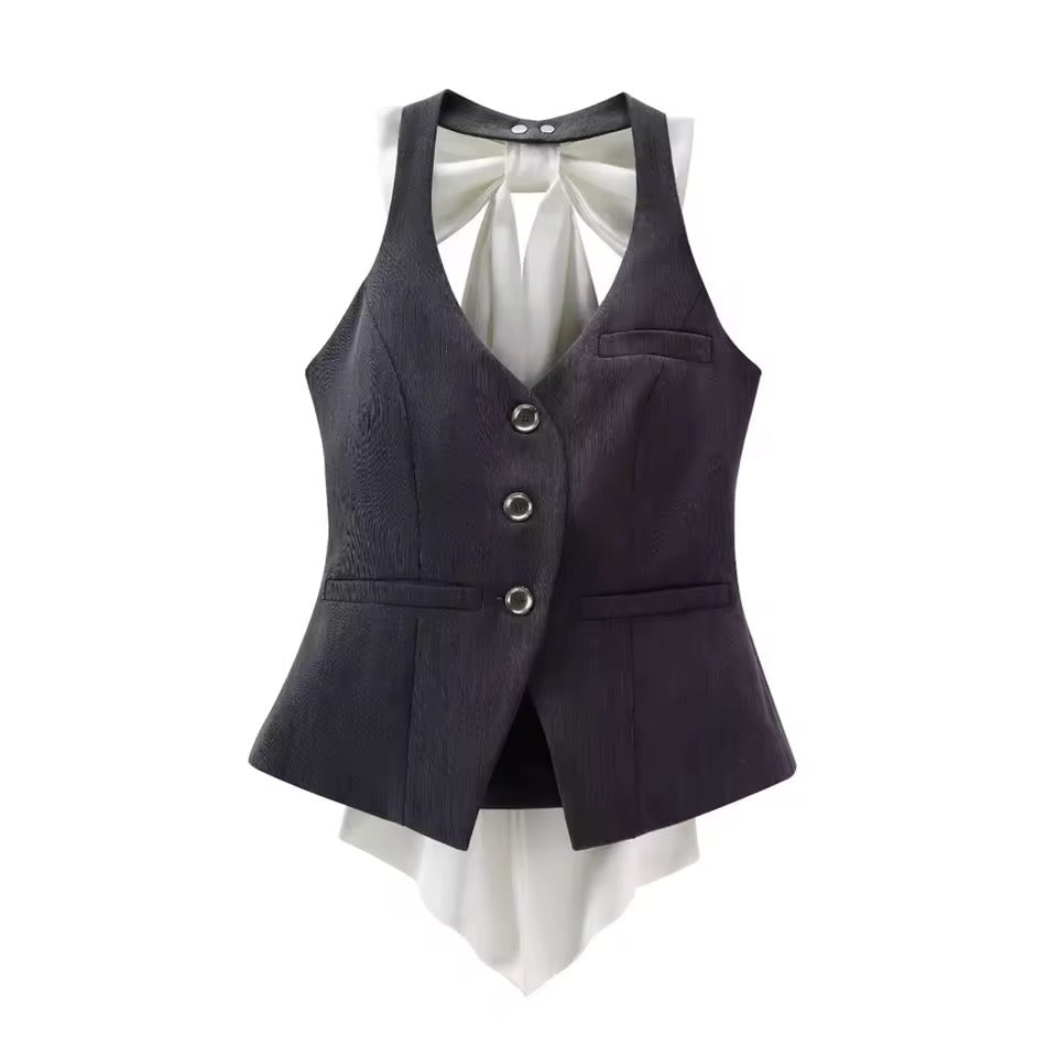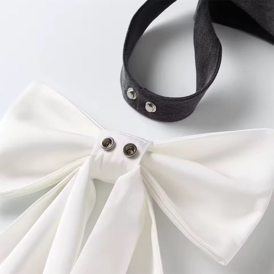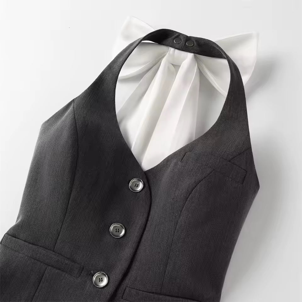 Elevate your wardrobe with our Grey Goth Kawaii Bow Suit Vest Top. The detachable cream bow adds a touch of elegance to the Korean gothic style. Fasten with the button and pair it with the matching skirt for a complete look. Invest in this versatile piece for a unique and stylish addition to your closet.