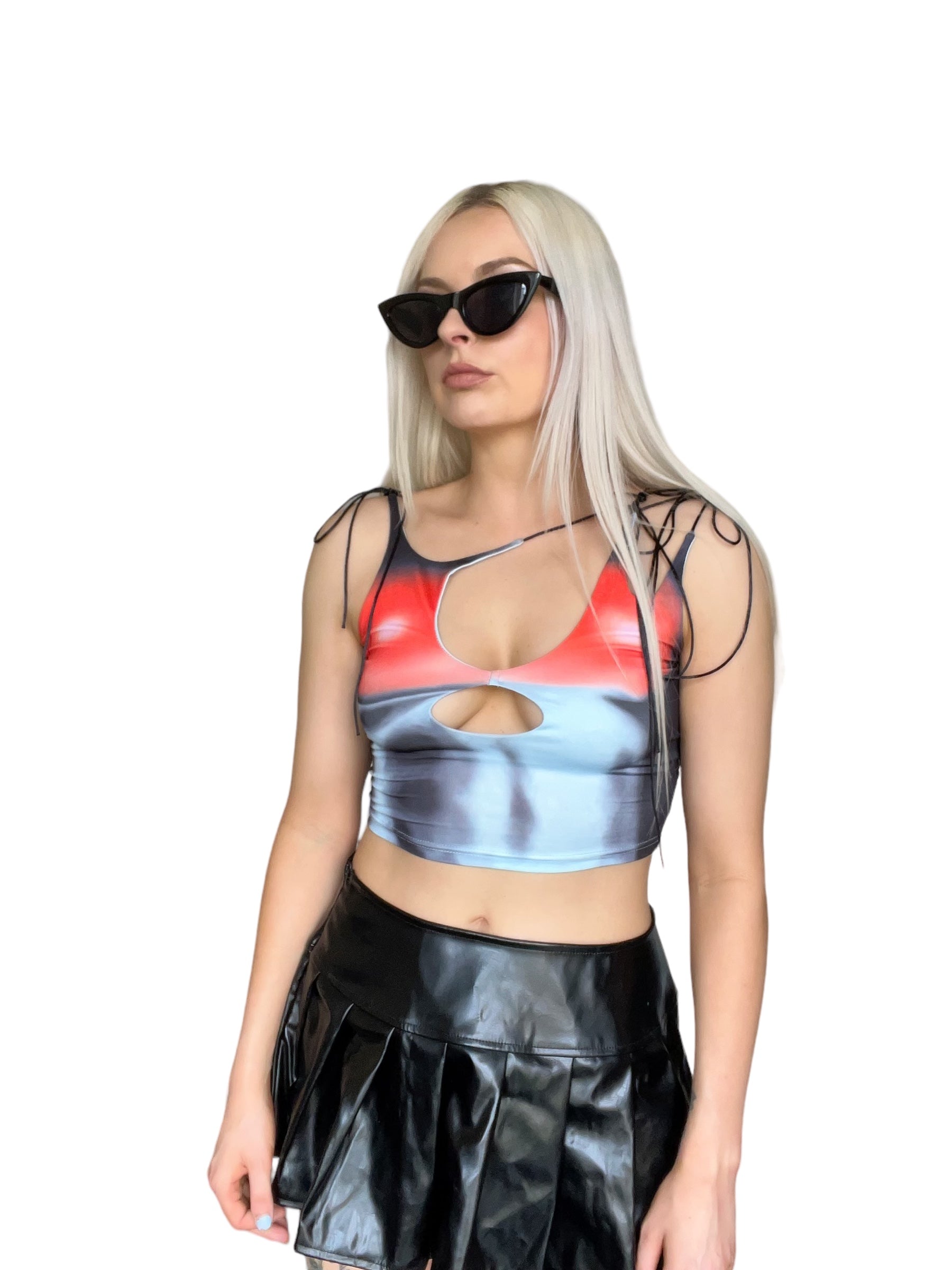 This Multicoloured 3D Print Cut Out Rave Crop Top is the perfect choice for any occasion. With a stylish cut out style front and lace up straps, it's ideal for both casual and evening wear. So you can look and feel your best no matter the occasion.