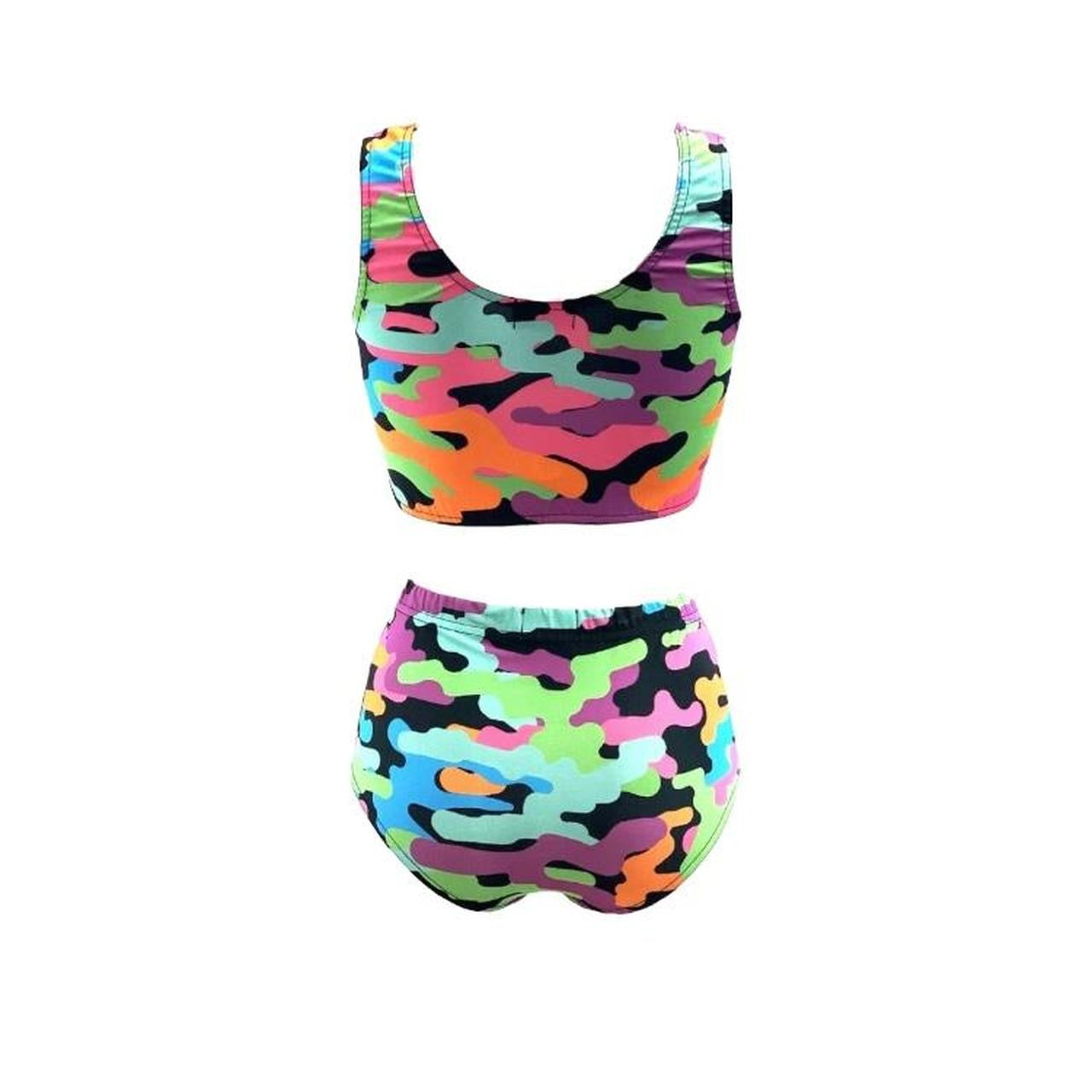 Multicoloured Camo Print Shorts Crop Top Co-Ord Festival Set