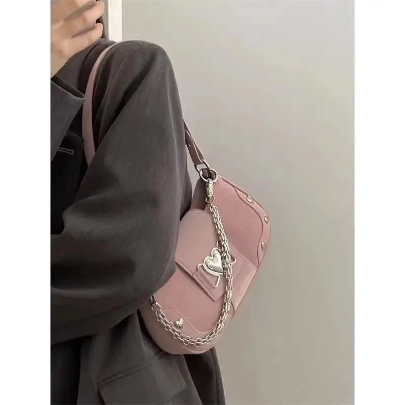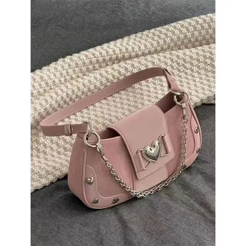 Pink Lolita Heart Studded Chain Shoulder Bag