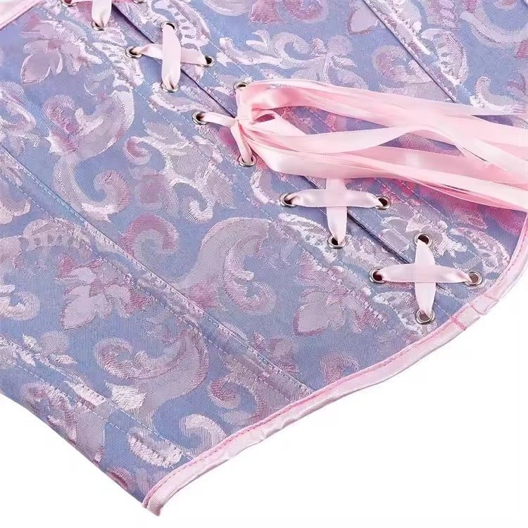 Dress up your look with our Purple and Pink Faircore Princess Cropped Corset Top. This top boasts a lace-up front and a push up effect for a flattering fit, while the thick structured fabric adds a touch of elegance. Perfect for any occasion, dress it up or down for a versatile and stylish addition to your wardrobe.