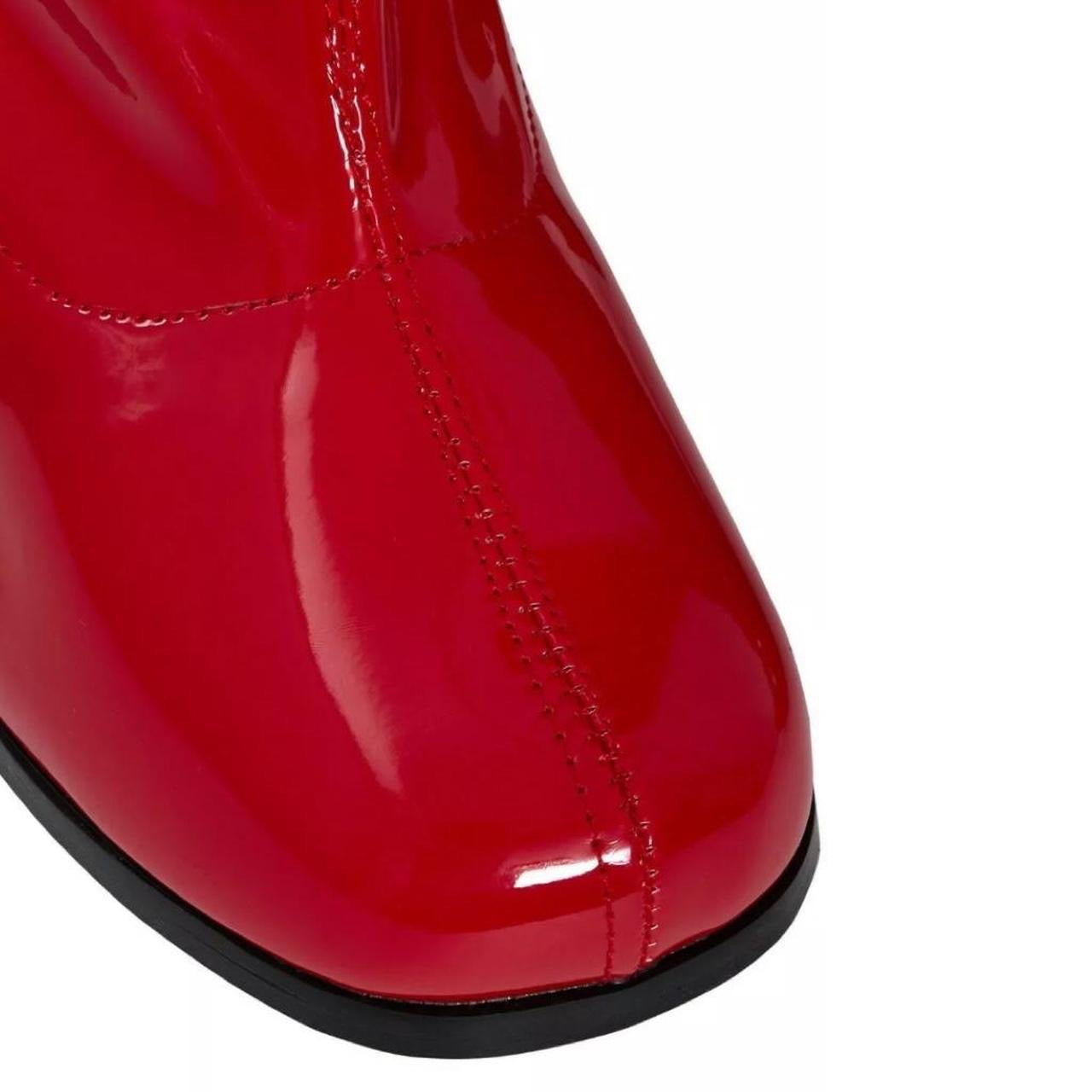 Red Patent Faux Leather Go Go Knee High Boots