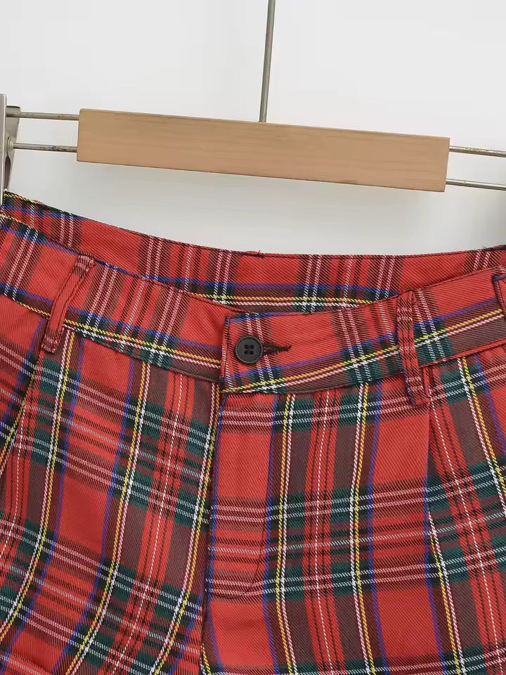 Red Tartan Checkered Punk Retro Hot Pant Shorts
