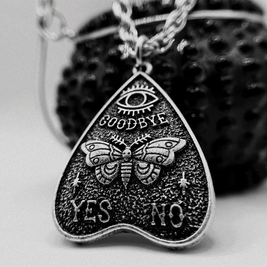 Silver Ouija Board Gothic Butterfly Pendant Necklace