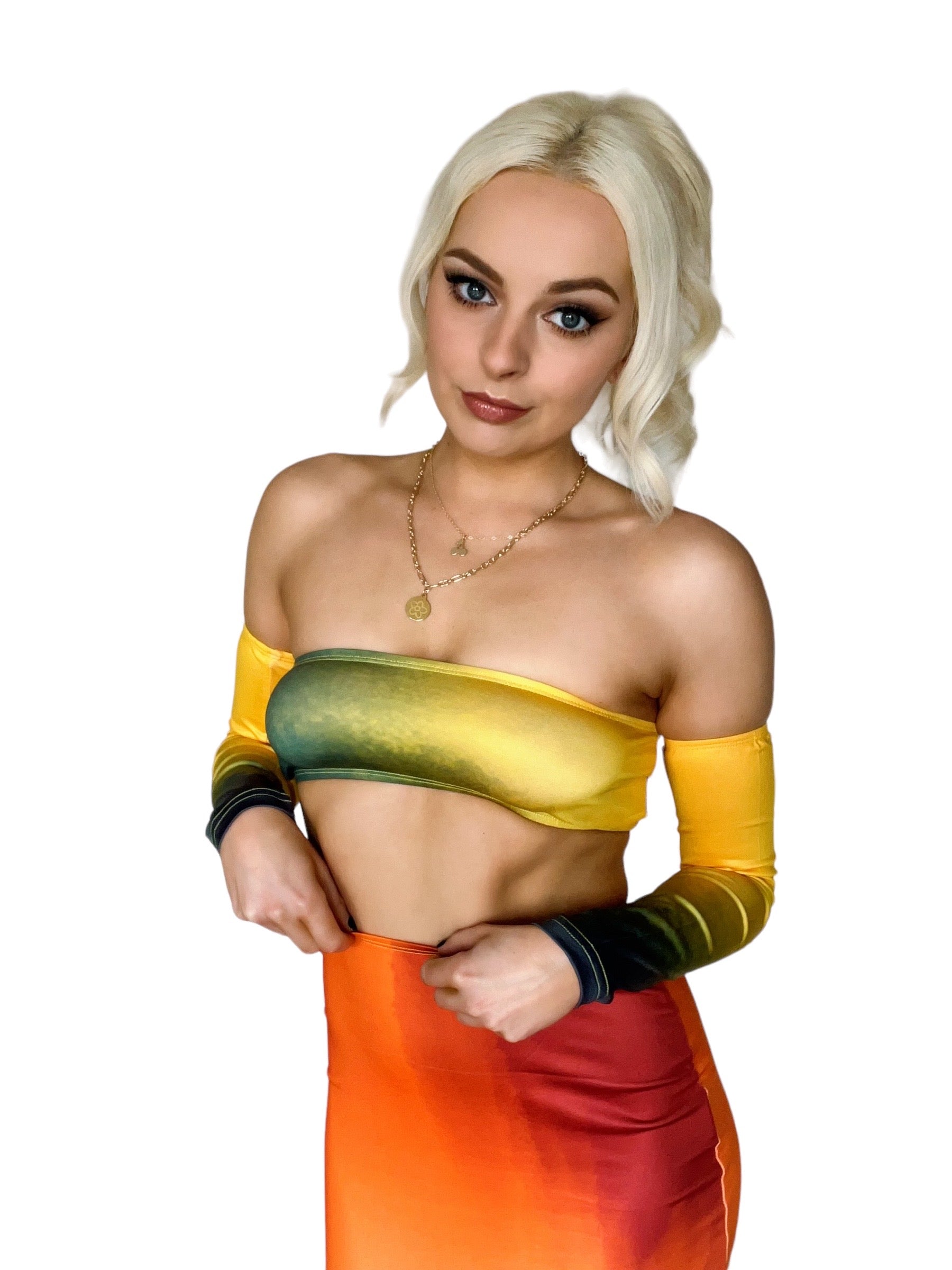 Make a statement in this Sunset Ombré 2 Piece Co-Ord Maxi Set, featuring a unique blend of fiery oranges and yellows! Dress it up, or dress it down - either way, you'll be turning heads everywhere you go. Match up with your gal pals and create your own ombré sunset vibe!