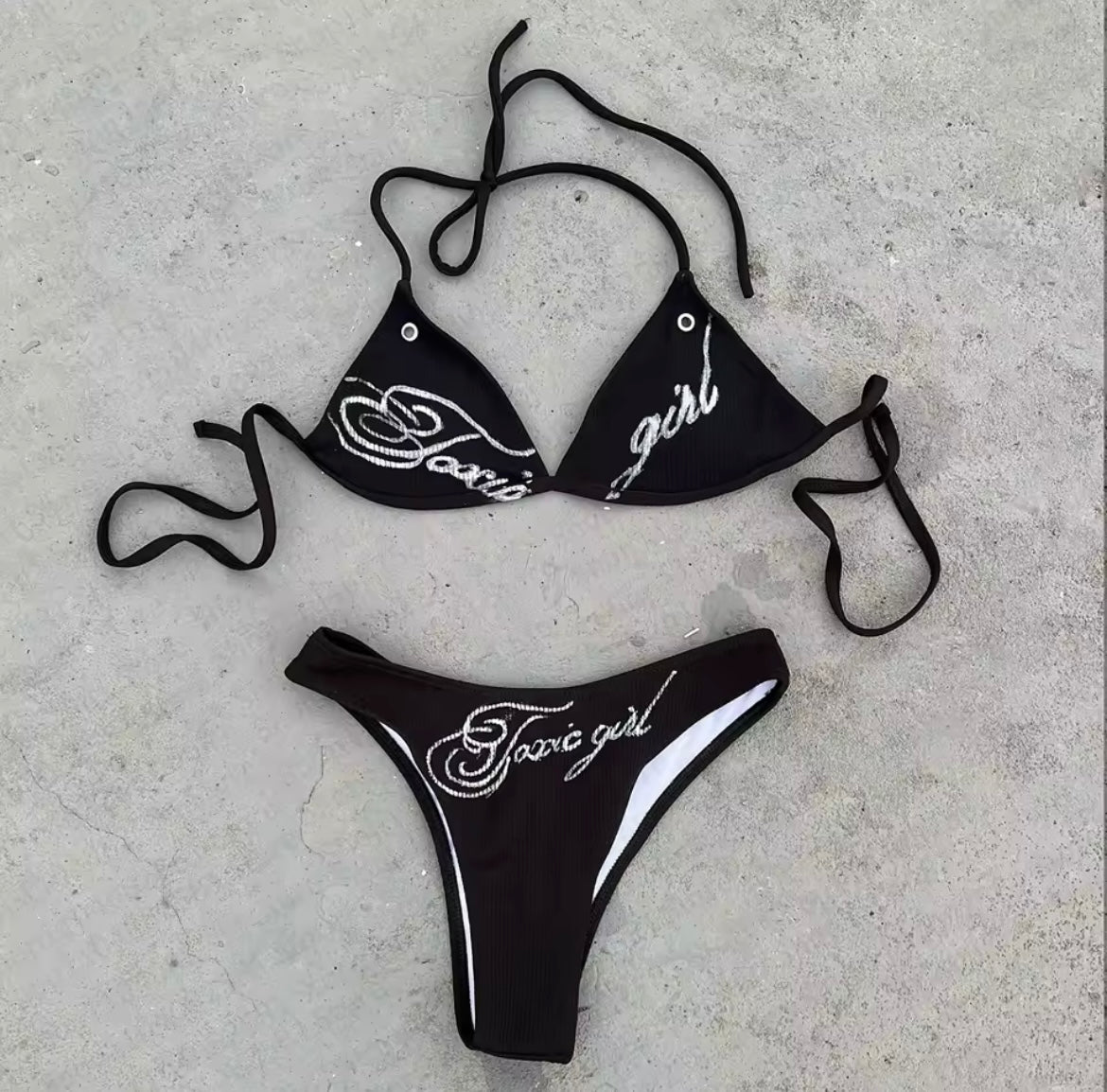 Toxic Girl Punk 2 Piece Slogan Bikini