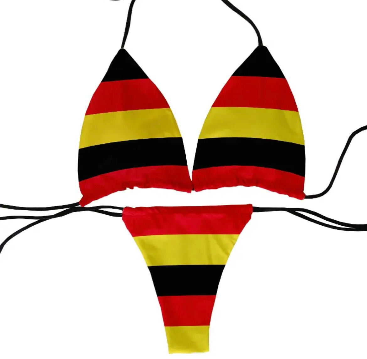 Show off your patriotism in style with our Country Flag 2 Piece Printed Micro Bikini Set. This set features a printed design that allows you to proudly rep your country. With a Brazilian cut bottom and a convenient two-piece design, you'll be comfortable and confident in this bikini set. Perfect for beach days or pool parties, this set is a must-have for any patriotic individual.