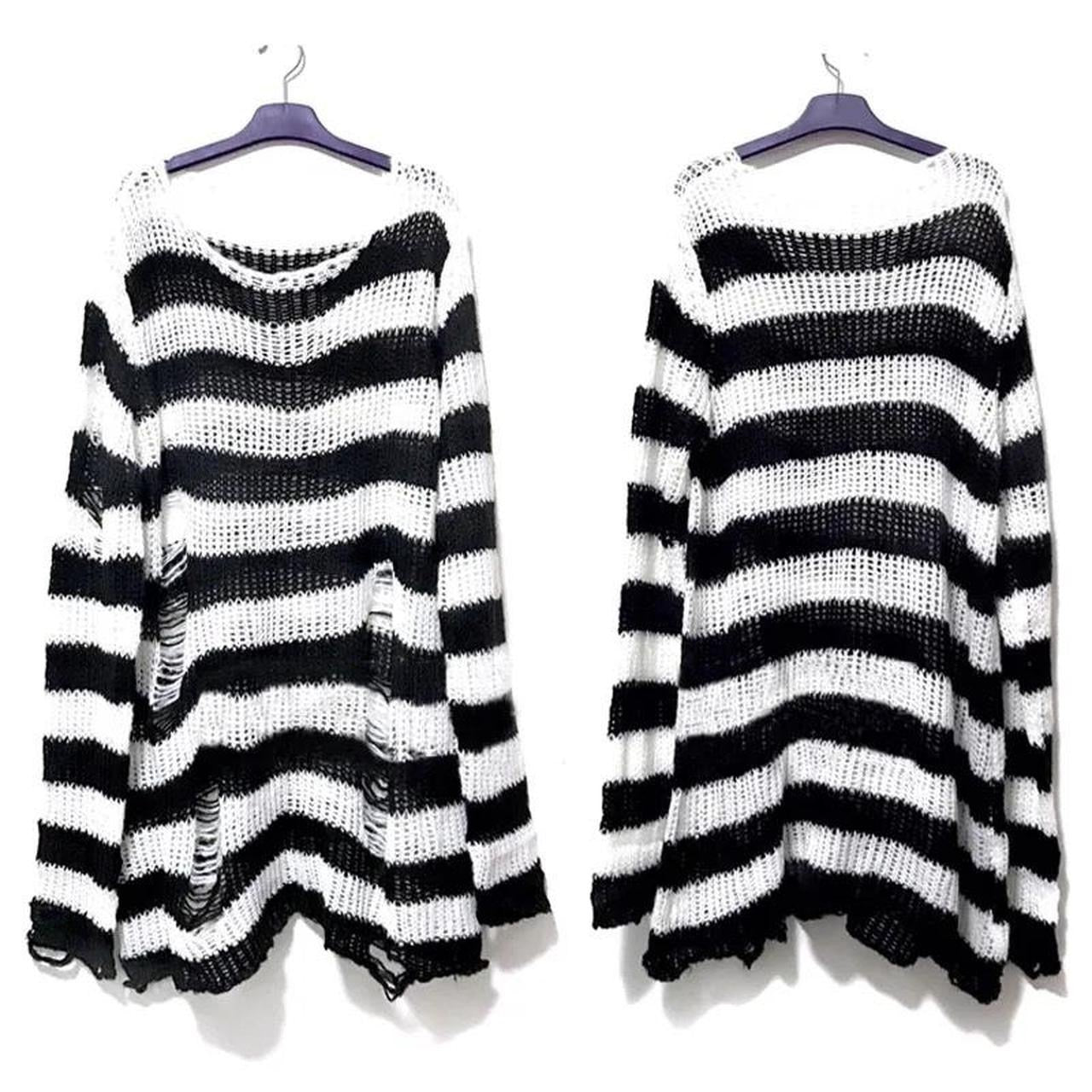 This striped grunge jumper features a distressed finish for a trendy, edgy look. With a length of 78cm and an oversized fit, it's both comfortable and stylish. No need to size up for a relaxed, chic fit.