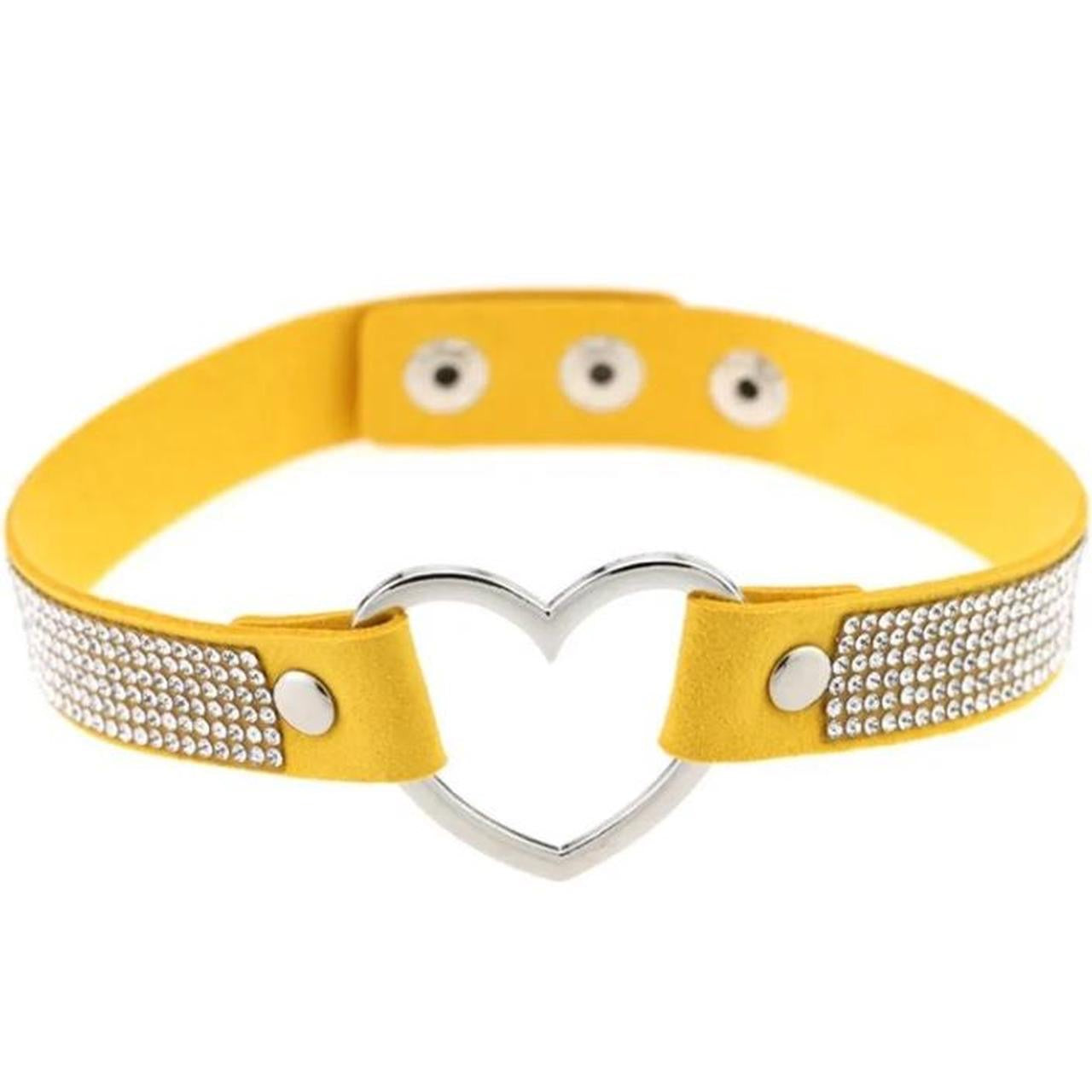 Yellow Faux Leather Rhinestone Heart Ring Choker
