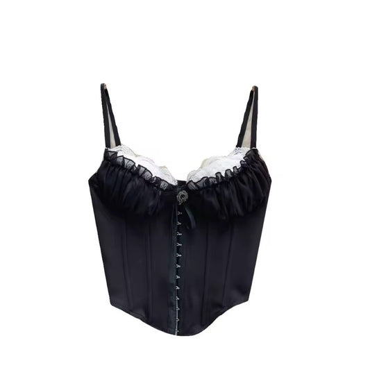 Black Lolita Vintage French Ruffle Bow Corset Crop Top